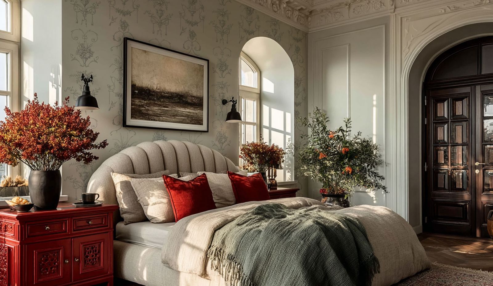 Не забываем, что английский стиль в интерьере зародился в эпоху расцвета барокко. Пышность, изящество, богатство, благородство и некая история должны читаться в каждой детали. Английский стиль эклектичен, а значит в нём может быть всё и сразу. Растительные сюжеты на стенах, декоративных подушках и шторах, коллекция снимков с ботанической тематикой или даже бабочек в рамках, географические старинные карты, вырезки из газет и журналов, старые исторические или семейные фотографии. Здесь же можно встретить такие экзотические «экспонаты» как африканские маски, бусы, веера, античные греческие вазы, восточные ковры, металлическую персидскую посуду (не забываем о традиционном британском и китайском фарфоре). Так же приветствуются живопись и гобелены в резных декоративных рамах.