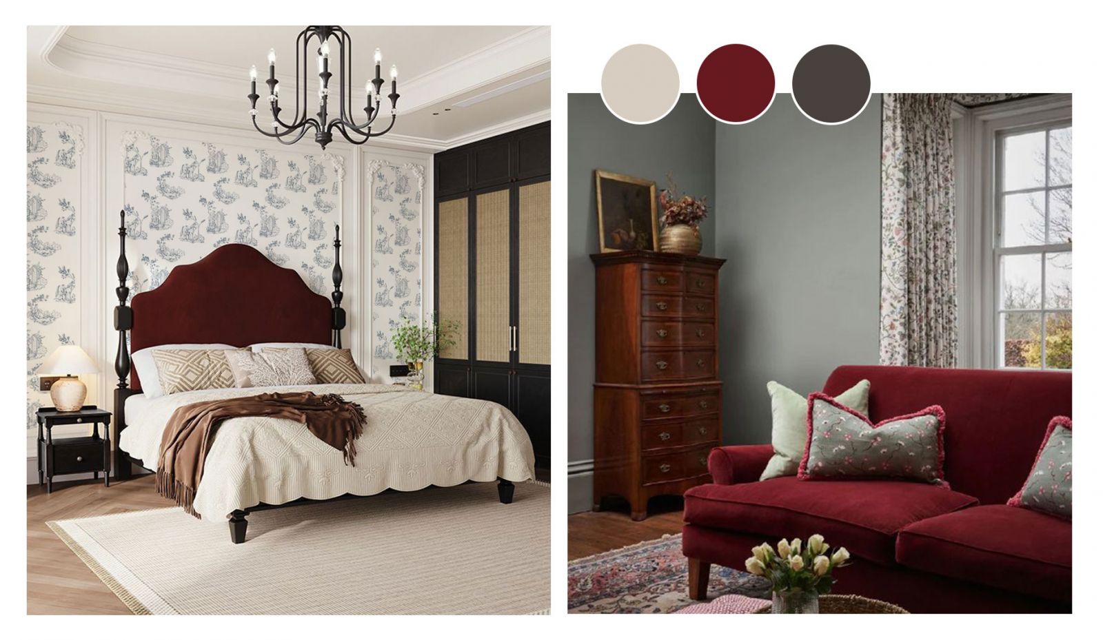 Английскому стилю в дизайне интерьера присущи сдержанность и глубина. Здесь не будет контрастов - даже белый здесь не чистый, а с лёгким оттенком желтого или серого. При оформлении пространства в стиле викторианской эпохи категорически стоит забыть о ярких контрастных цветах и сочетаниях. Общая цветовая гамма пространства должна обволакивать, словно утренний Лондонский туман. Отдавайте предпочтение зелёным (хвойному, травянистому, оливковому), благородным красным (таким как бордовый, винный, терракотовый), тёплым песочным оттенкам. Удивительно, но синие цвета в английском интерьере не особо пользуются популярностью.