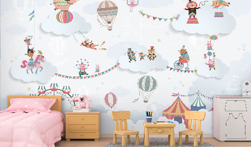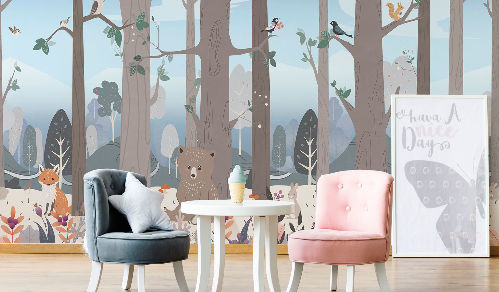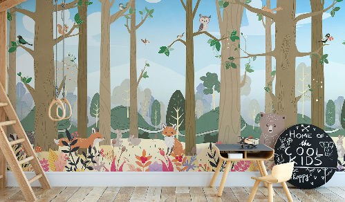 Вы обязательно подружитесь с этими забавными героями. Милые зверюшки живут в своем маленьком городе, в лесу, путешествуют на воздушных шарах и велосипедах, самолетах. Также сюда входят новые детские карты мира. Все дизайны выполнены в нескольких цветовых вариациях, чтобы вы могли подобрать гармоничный вариант для вашего проекта комнаты.