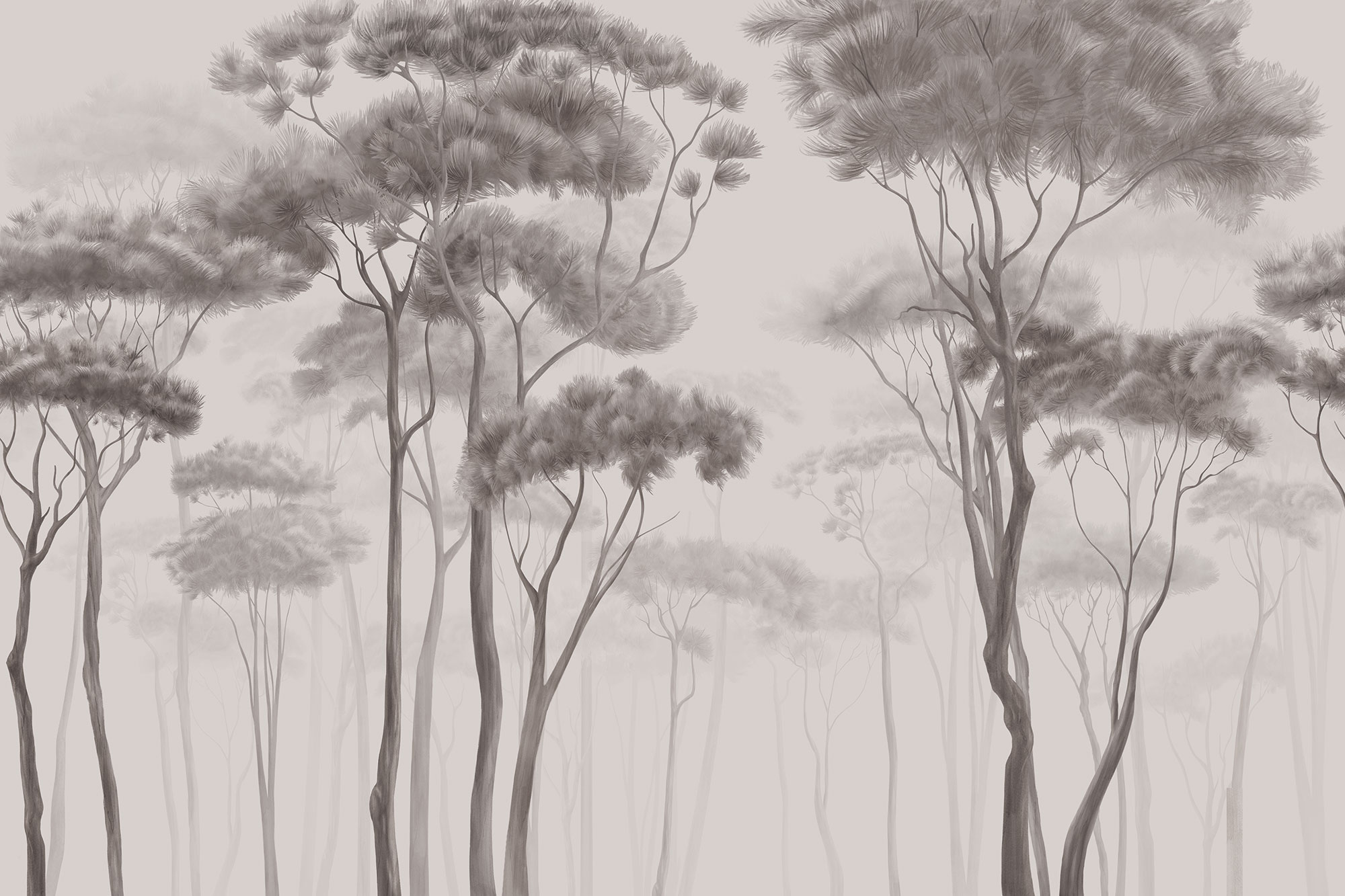 Trees in the fog sepia