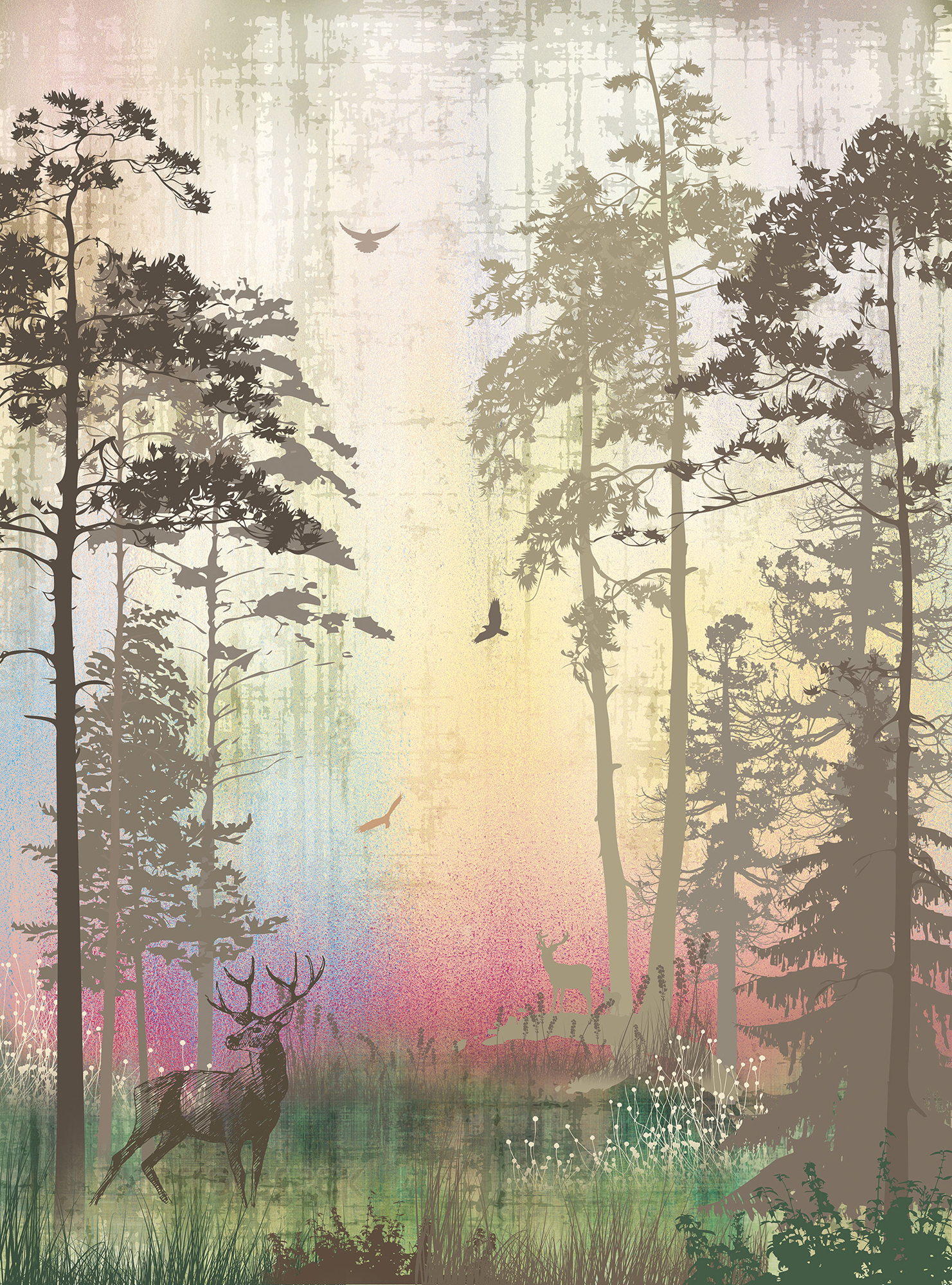 Shades. Deer and forest