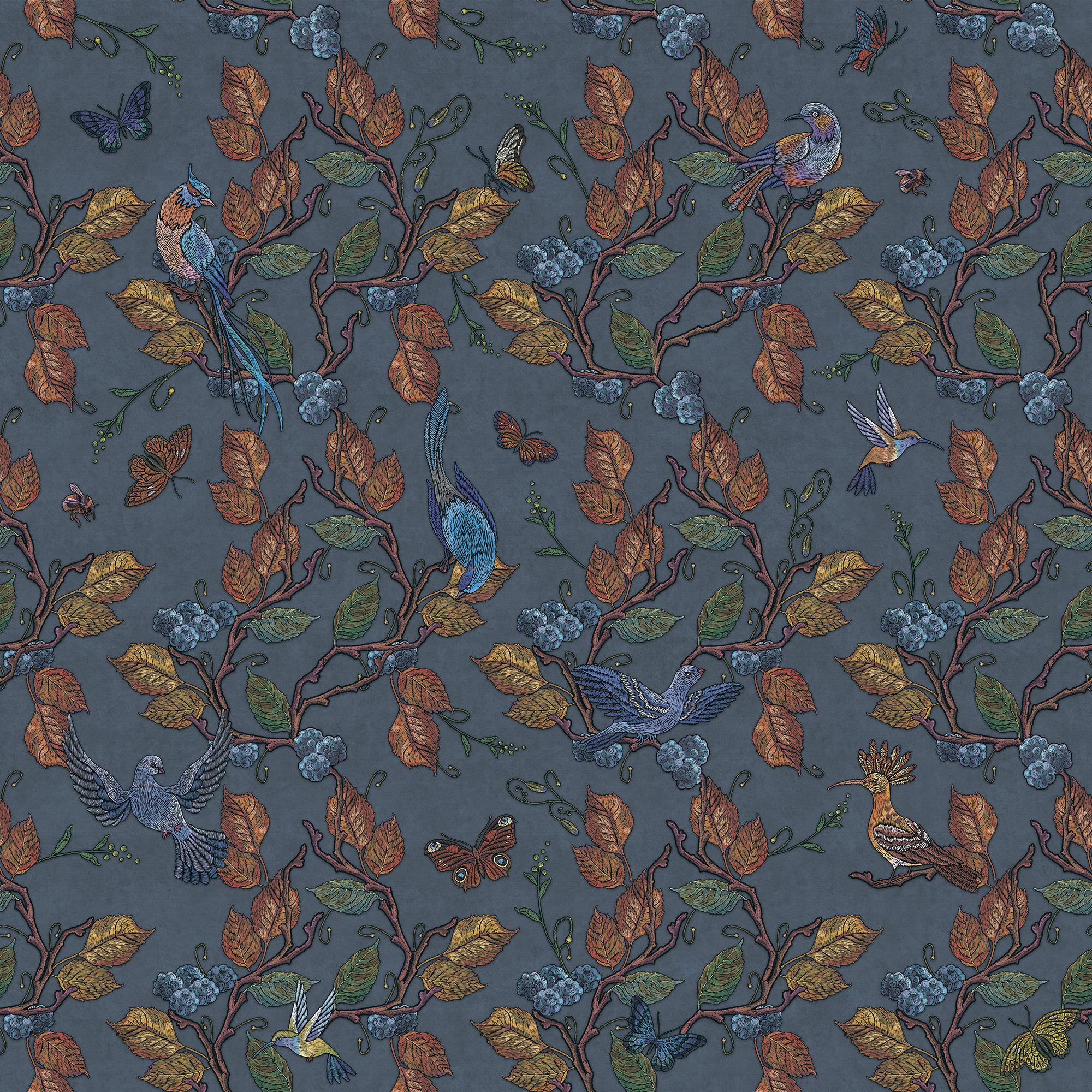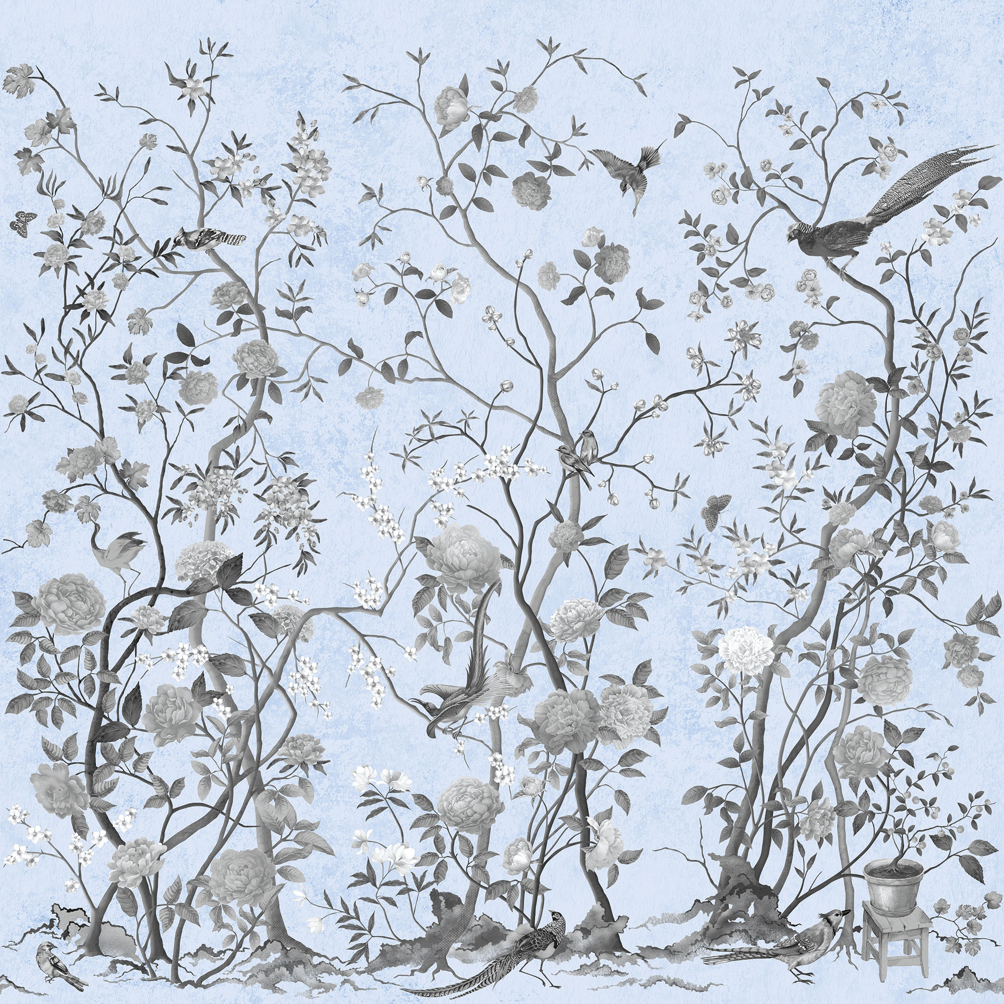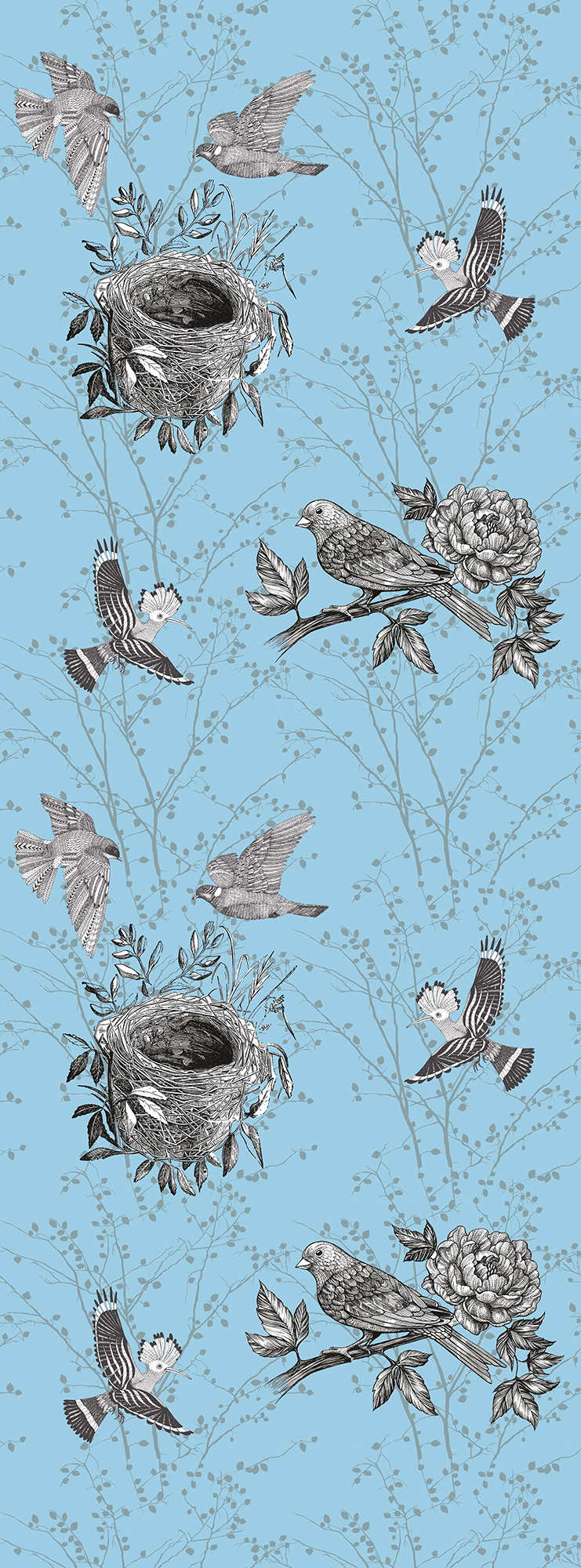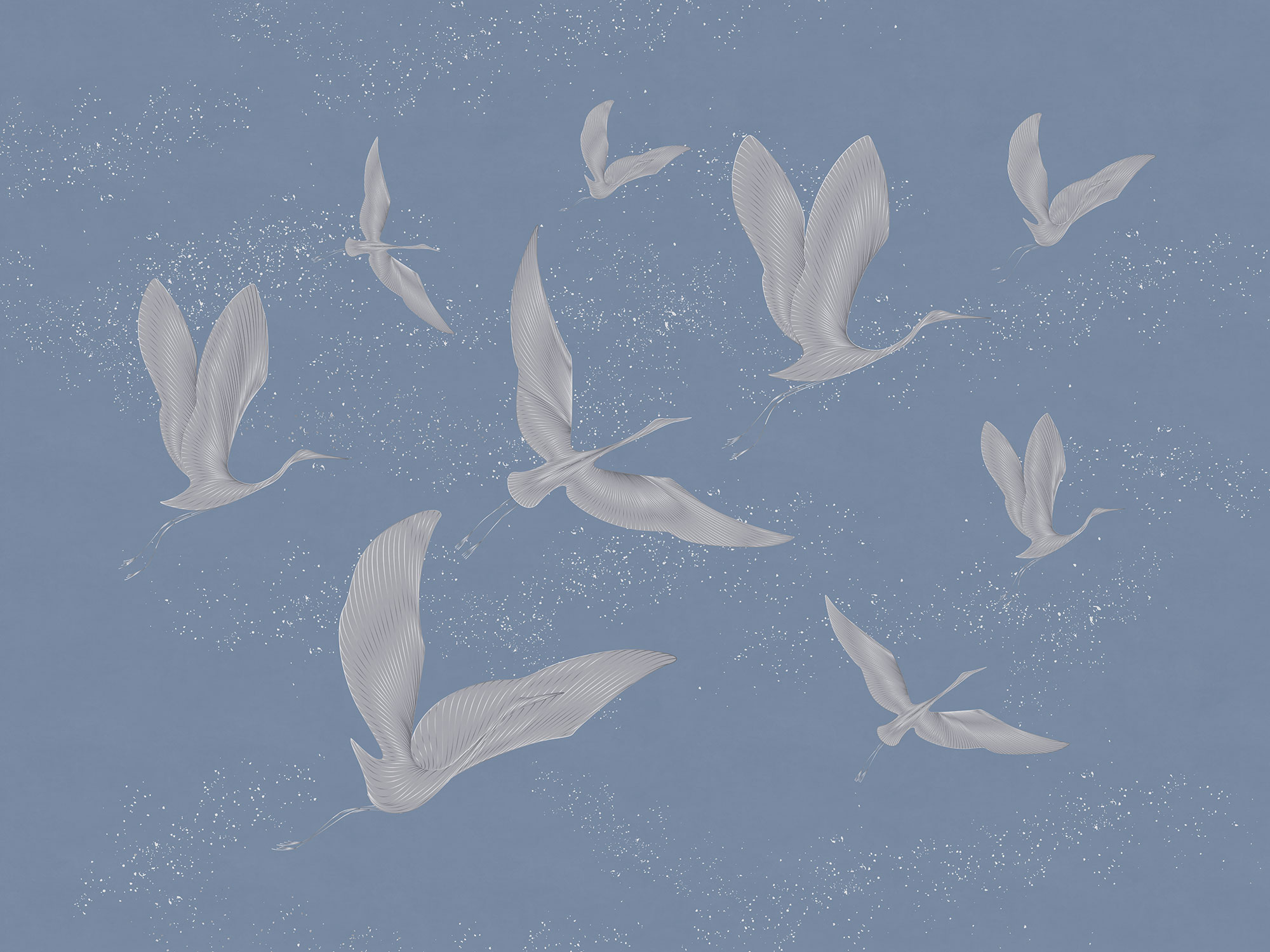 Japanese Birds steel blue