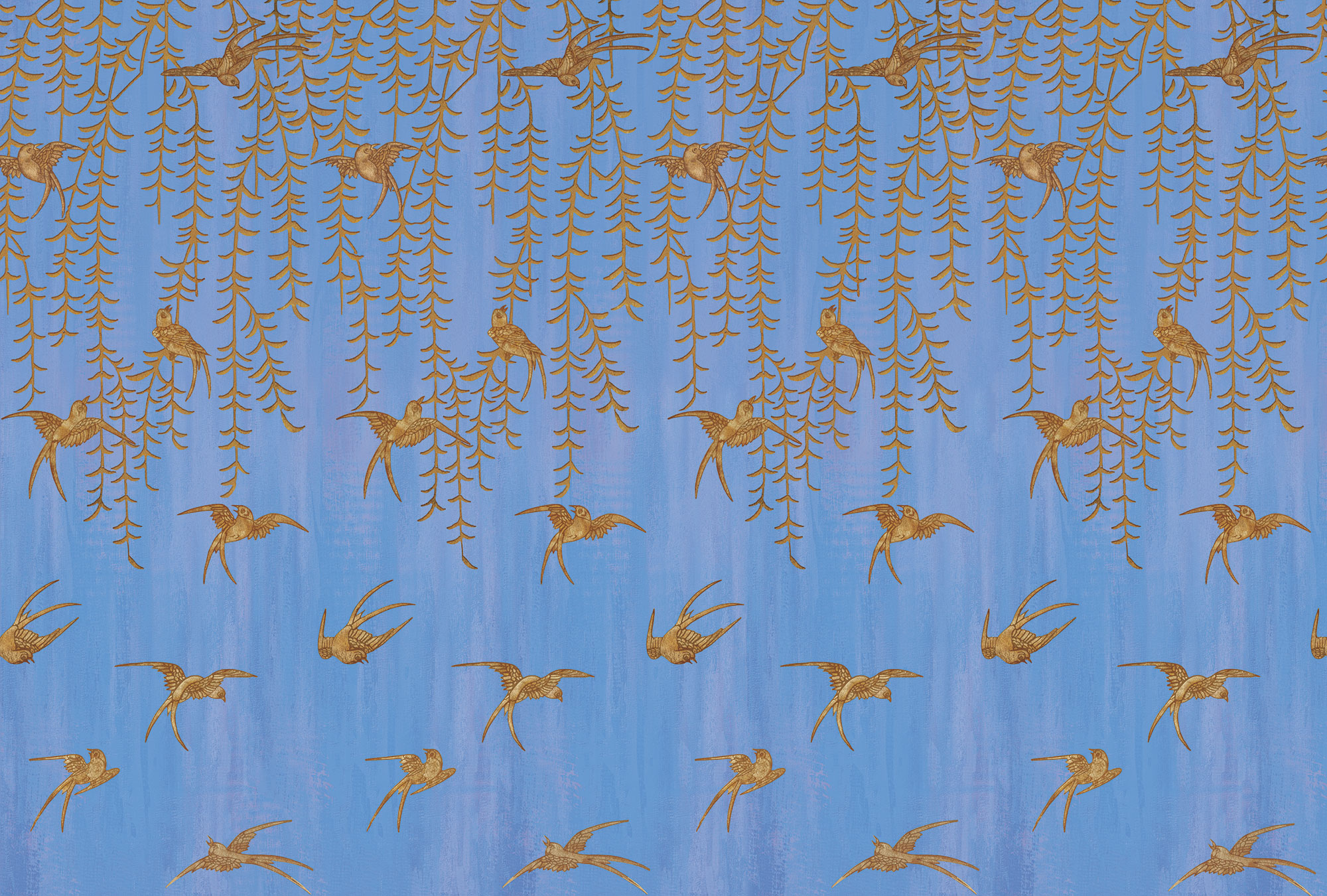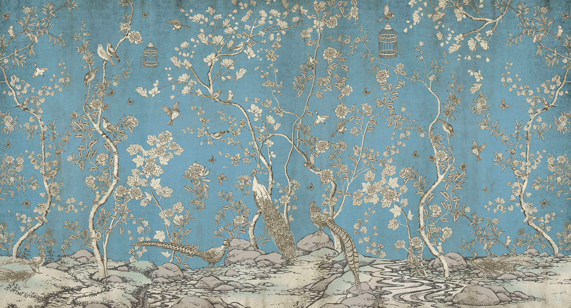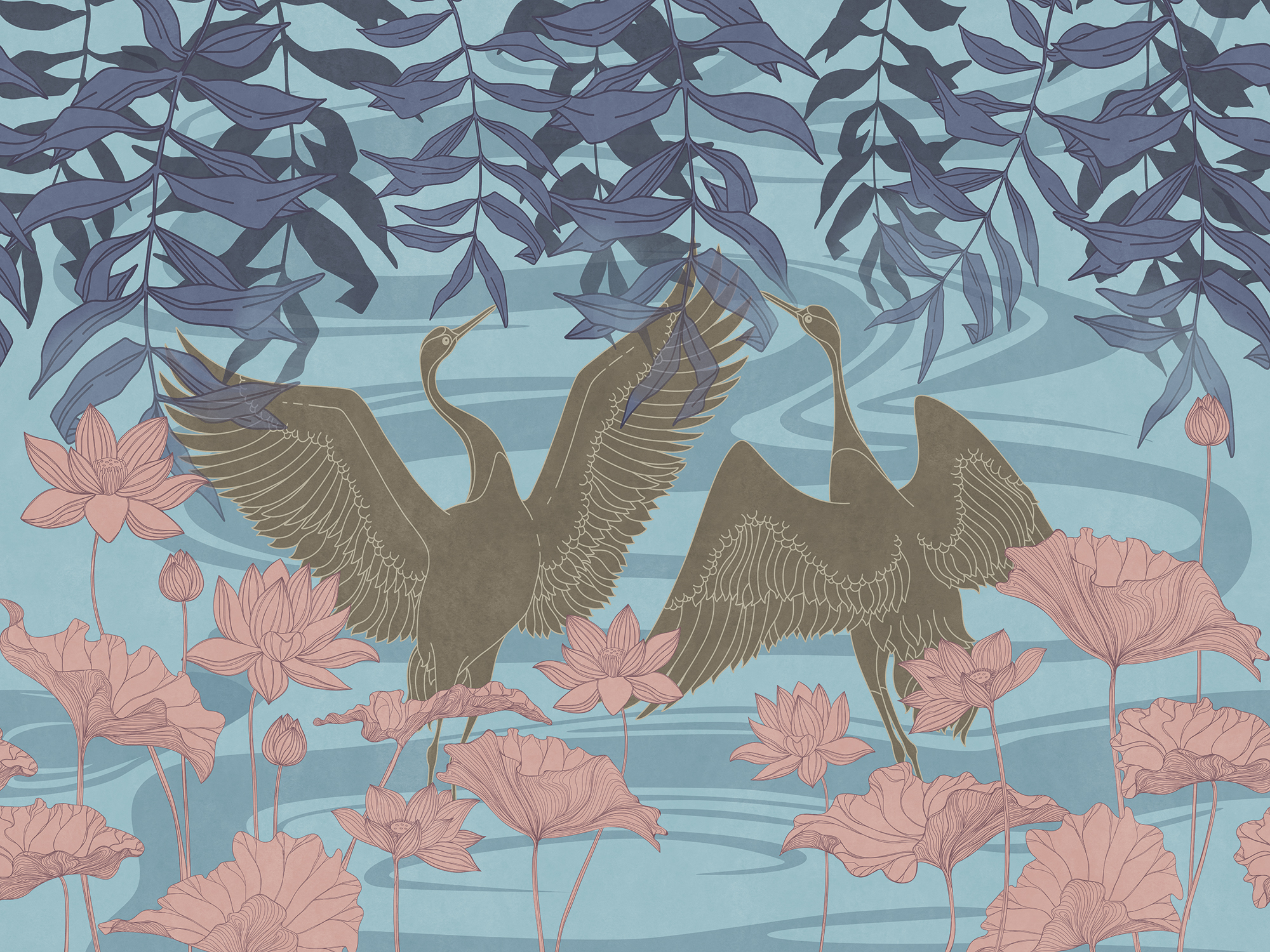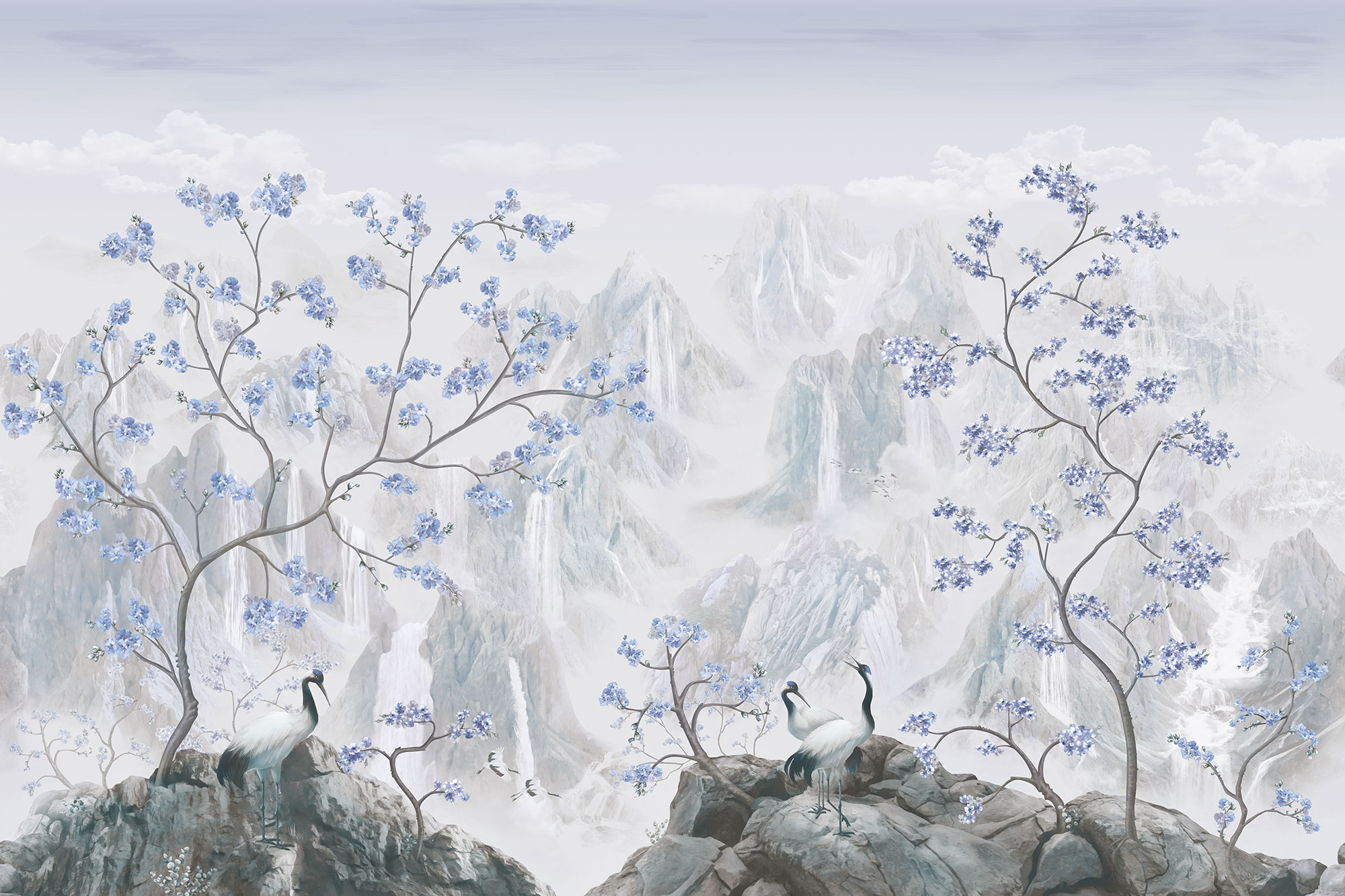 Japanese Birds steel blue