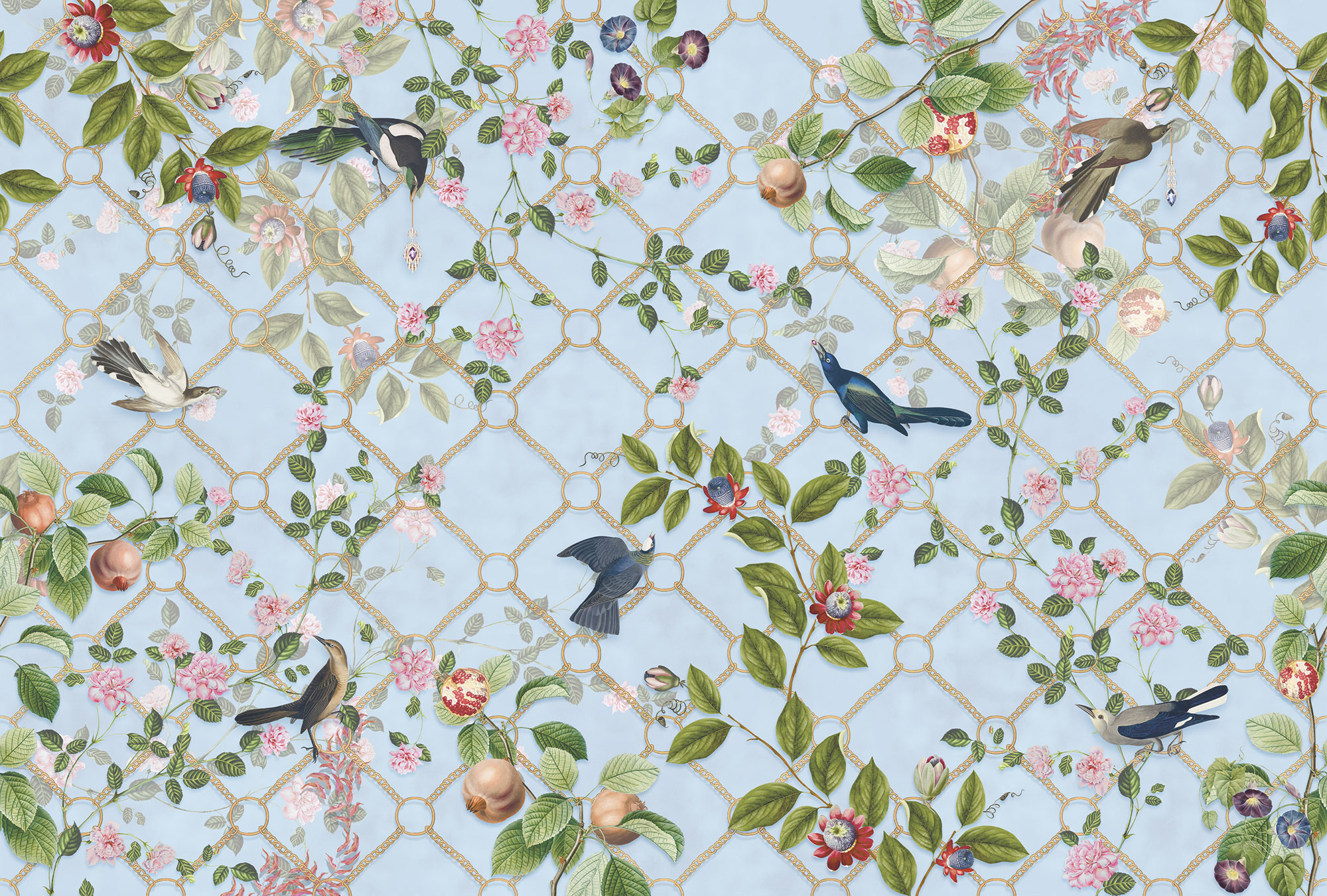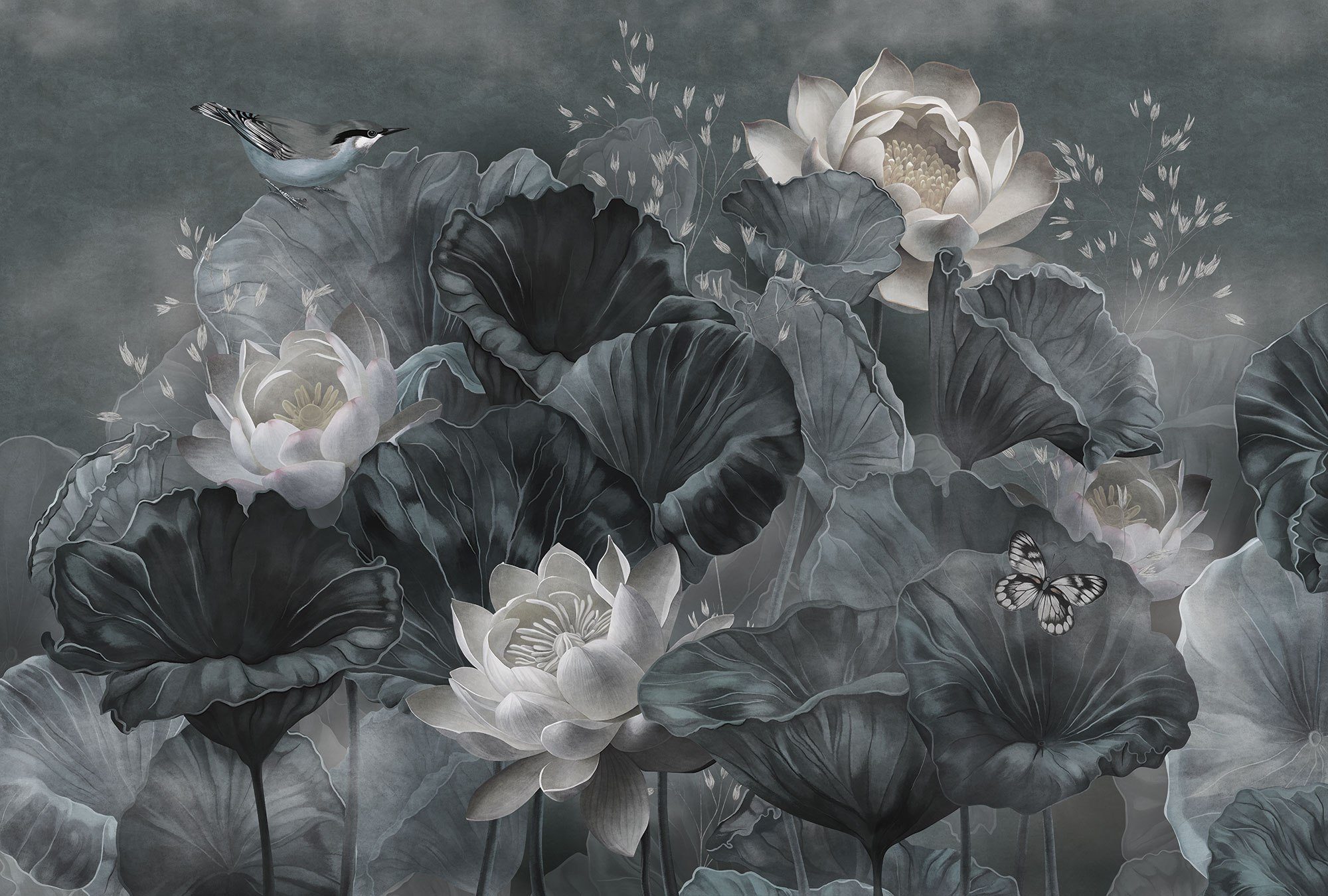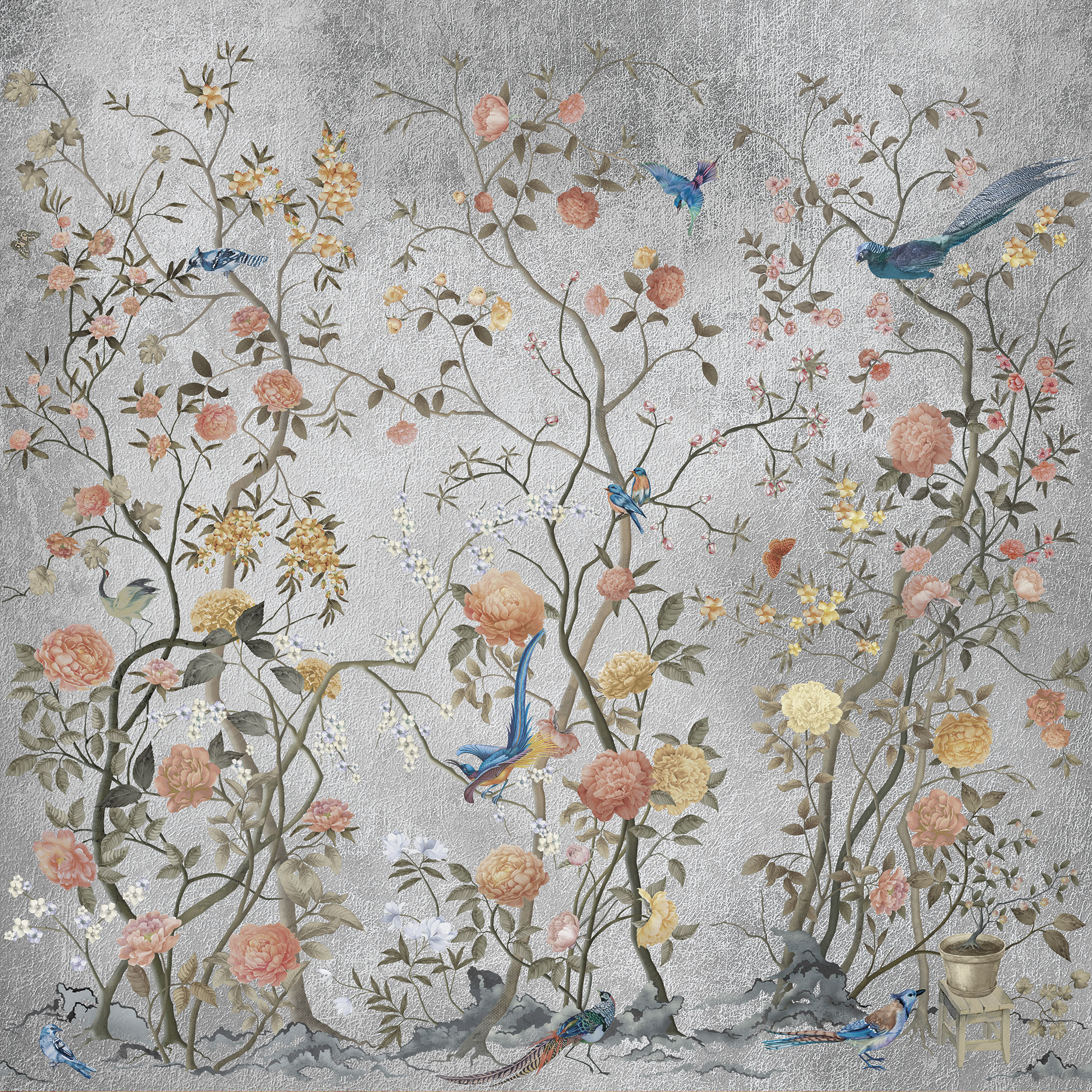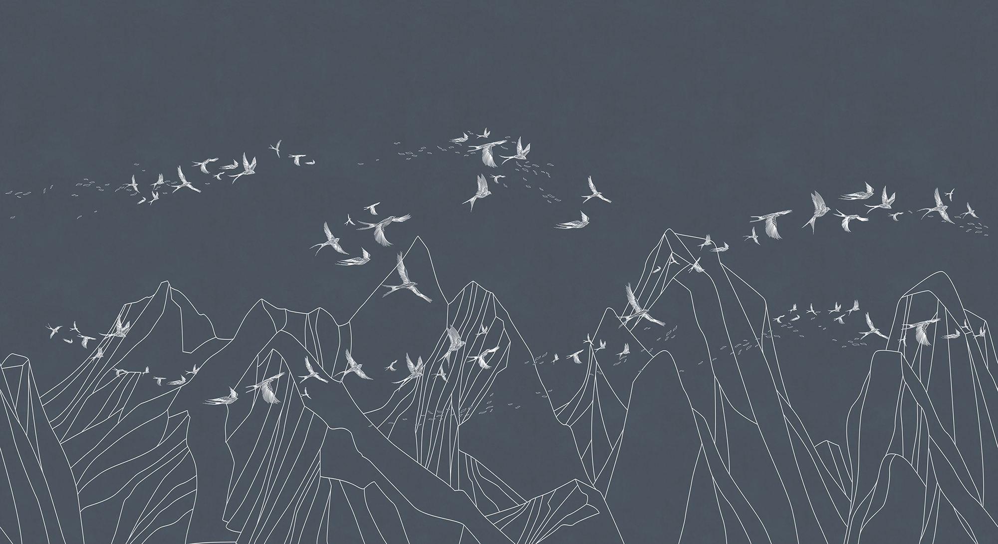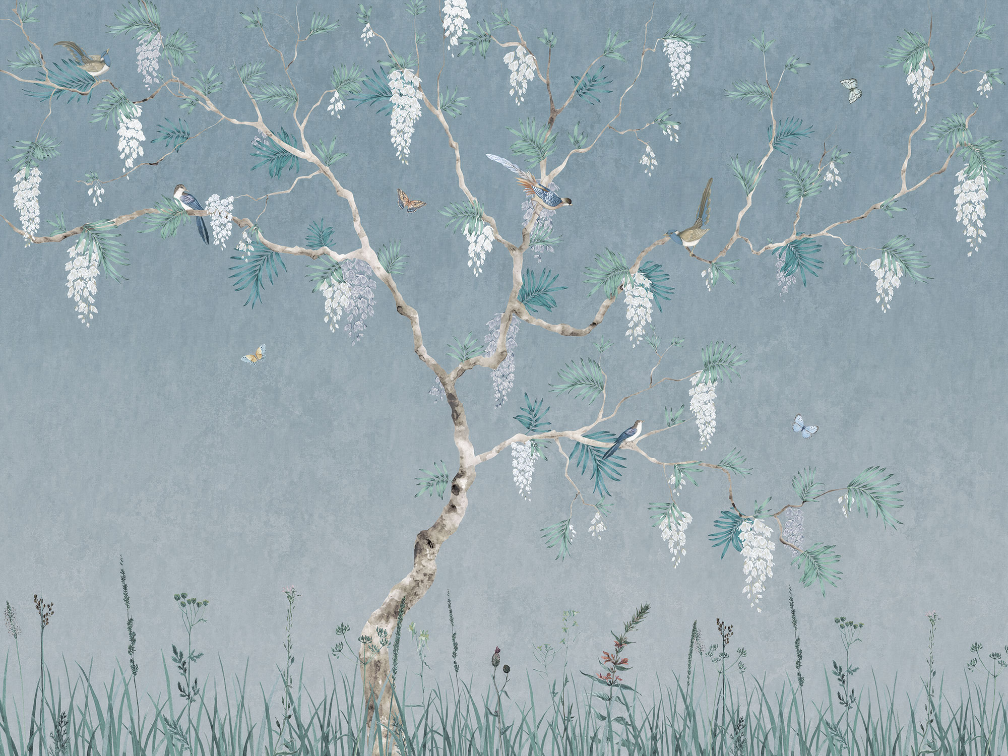 Japanese Birds steel blue