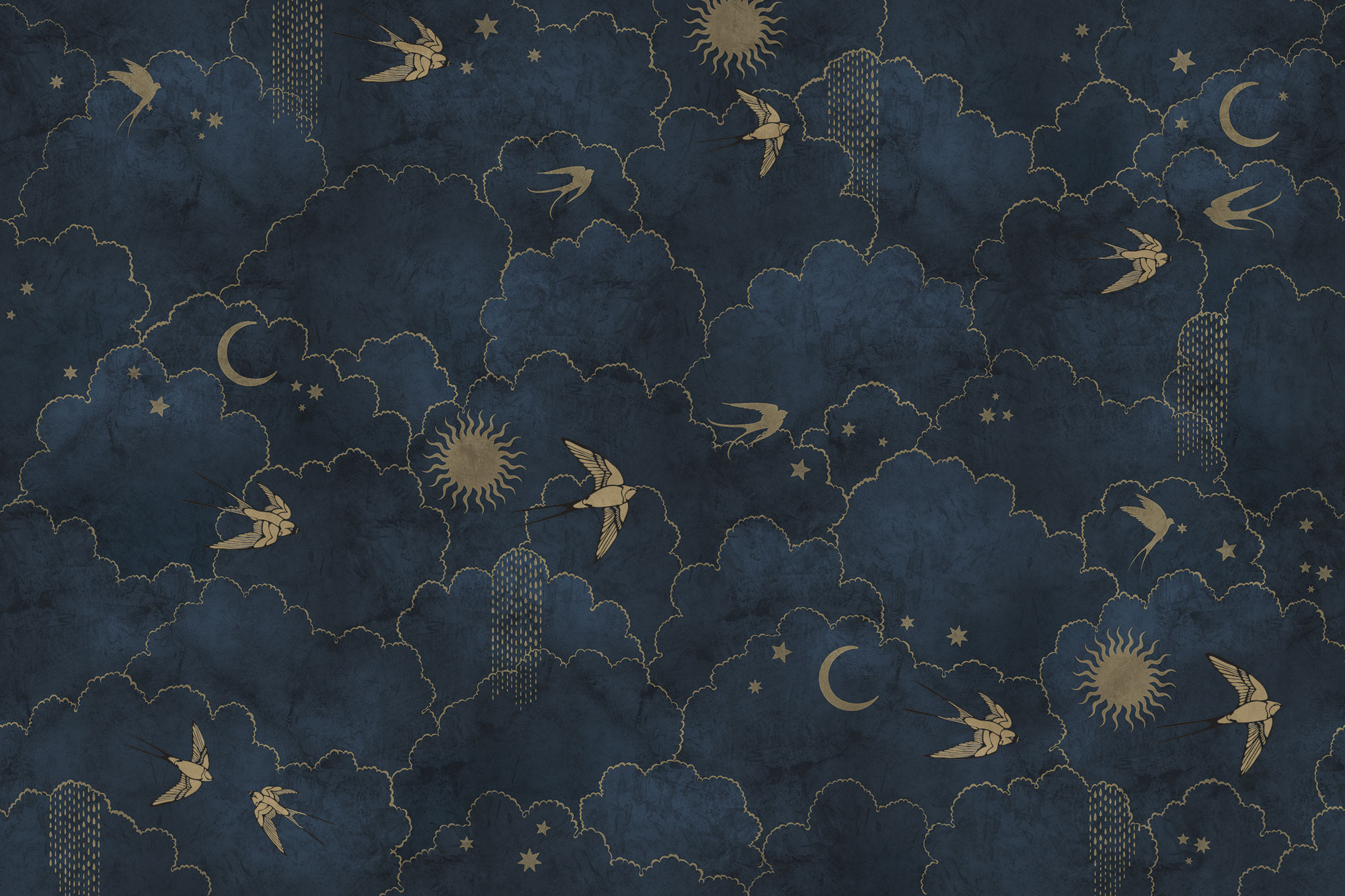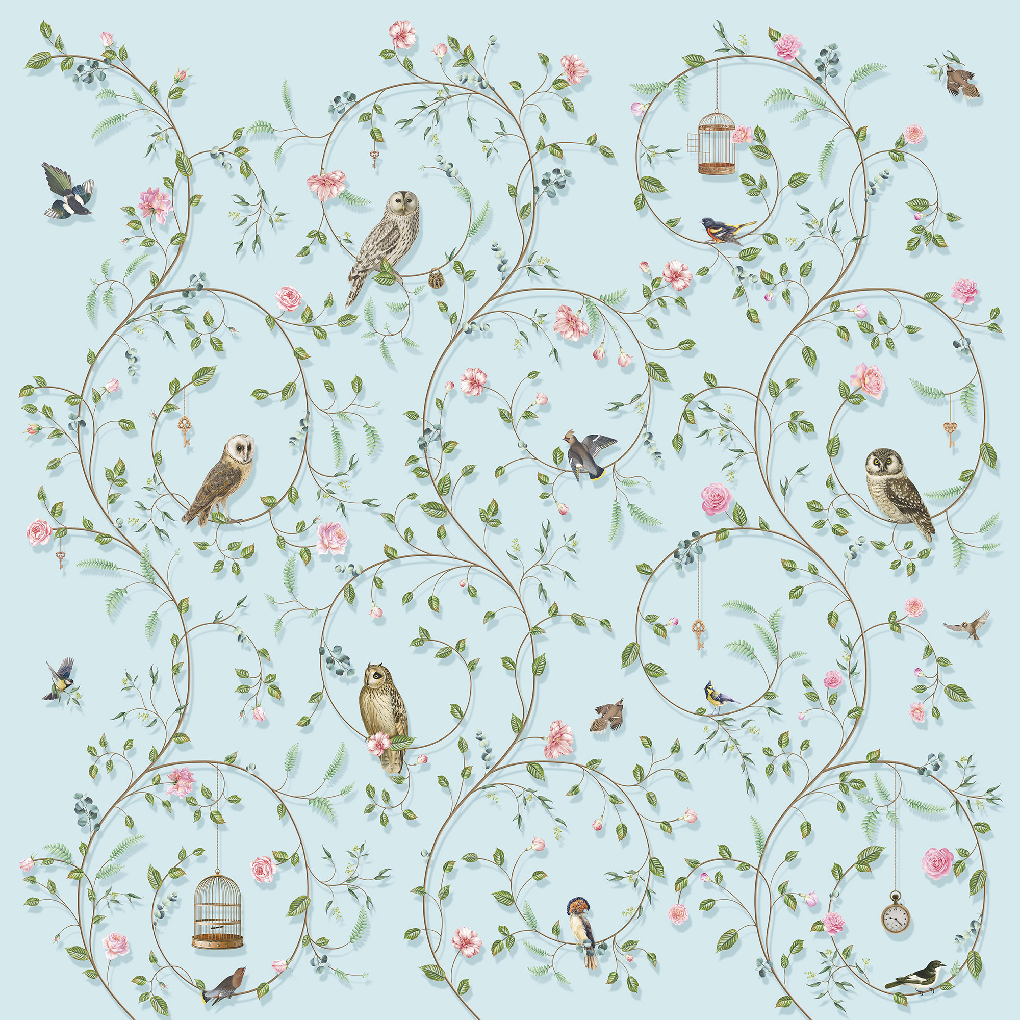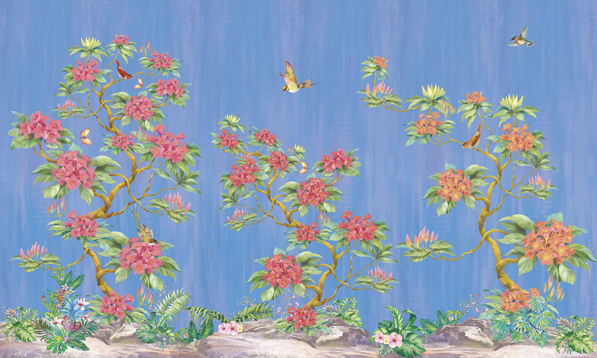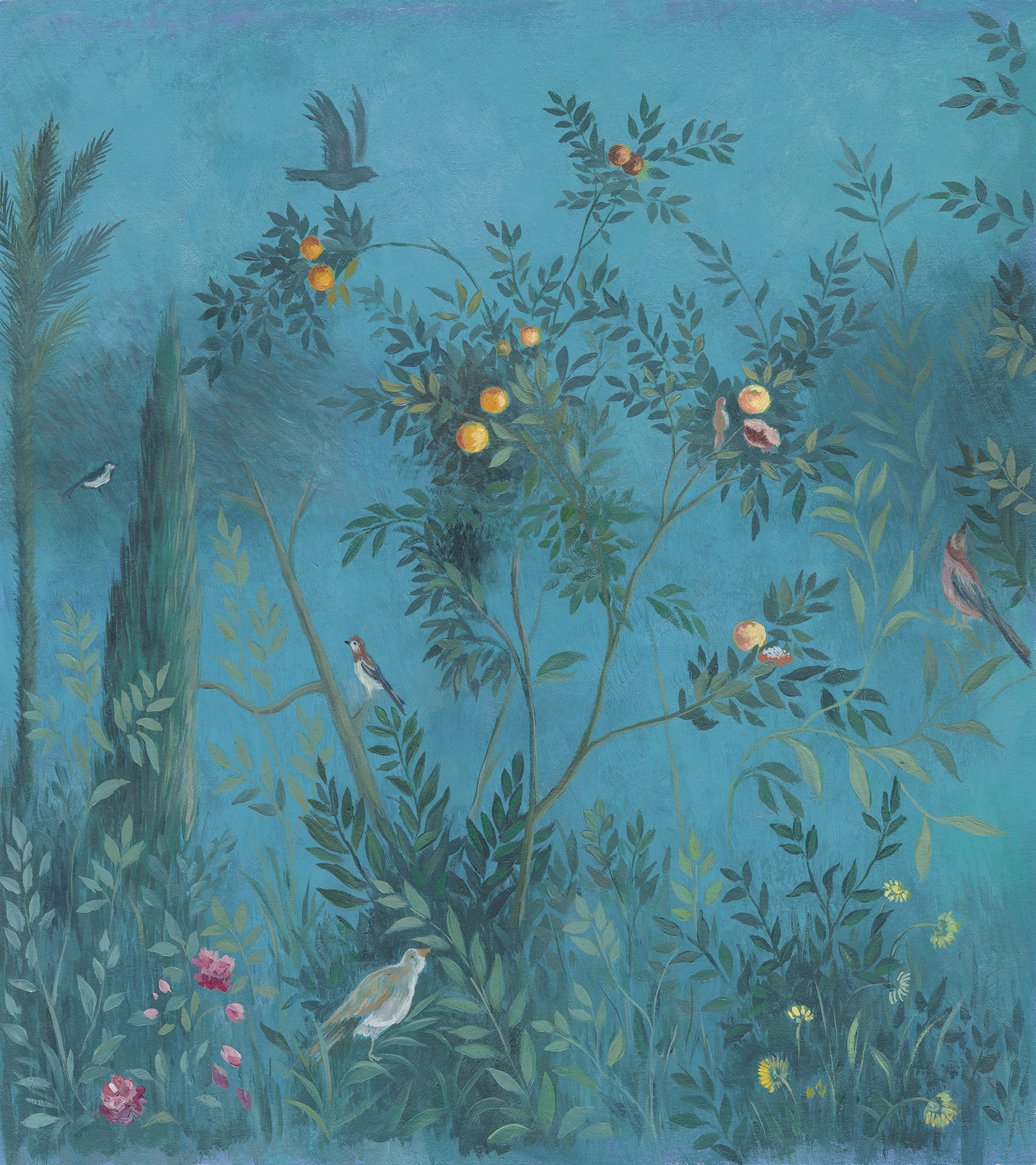 Japanese Birds steel blue