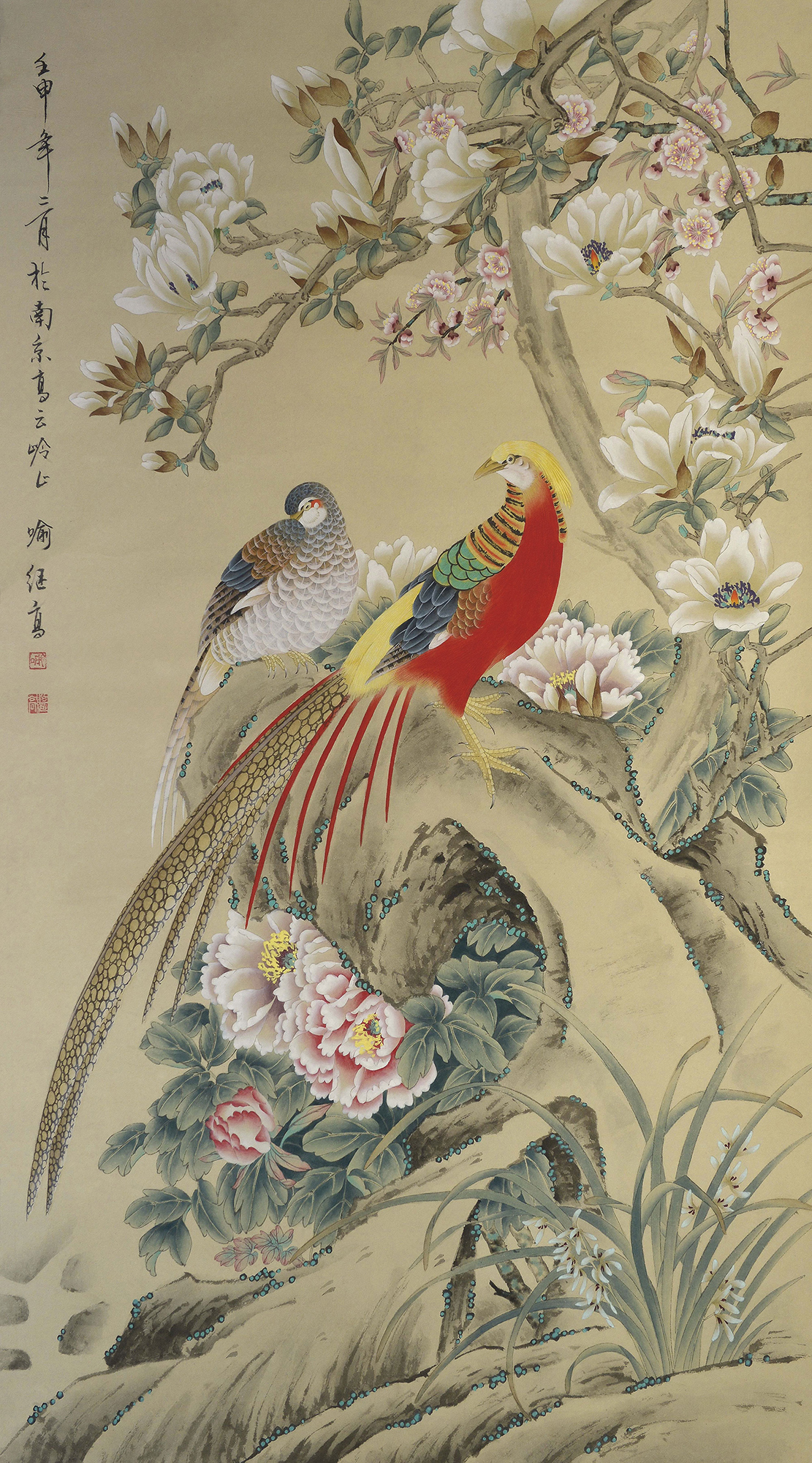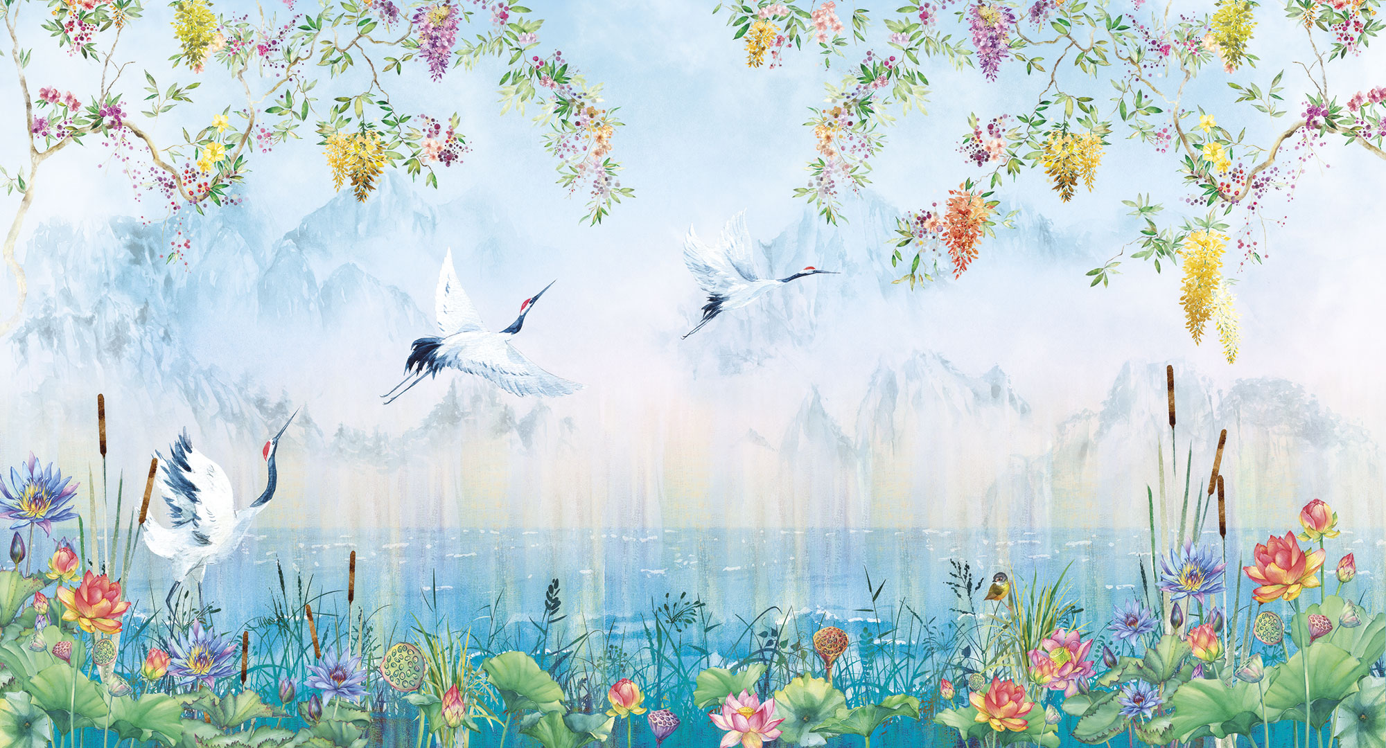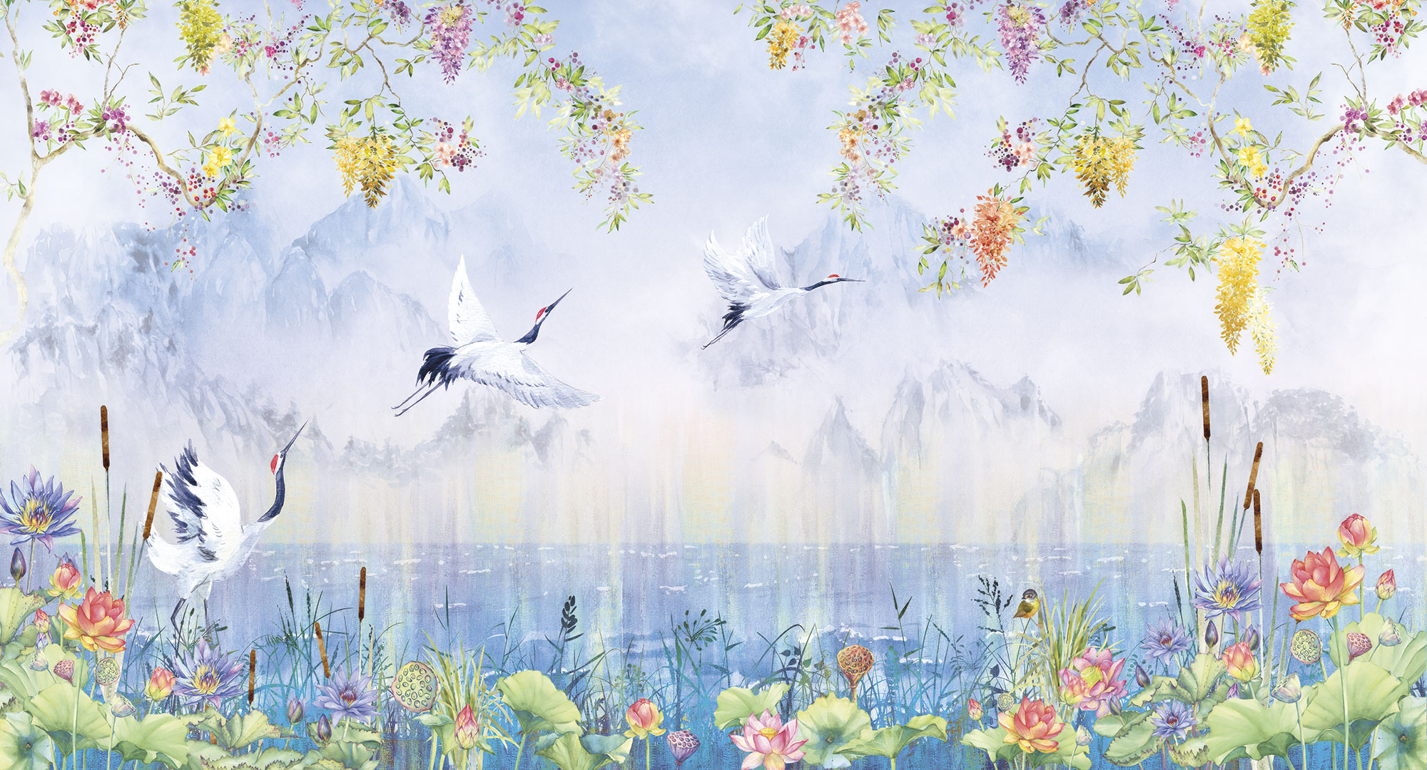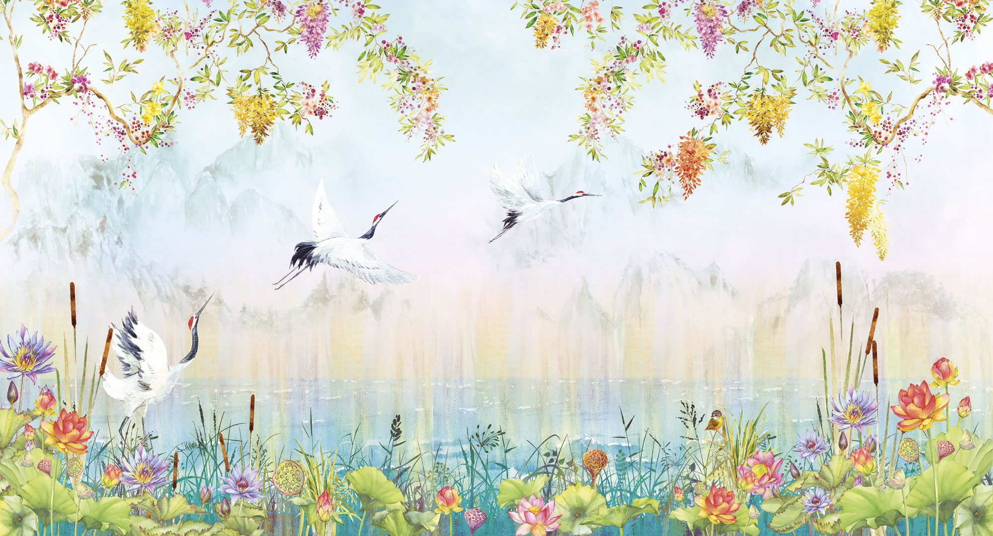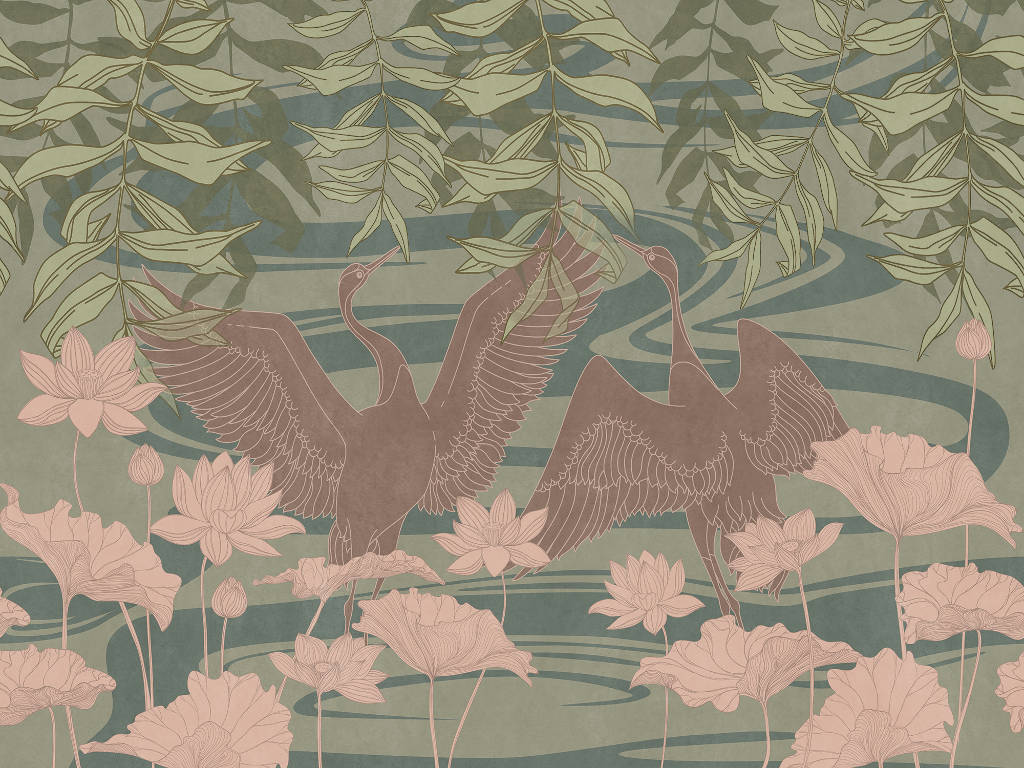 Сrowned storks and flowers
