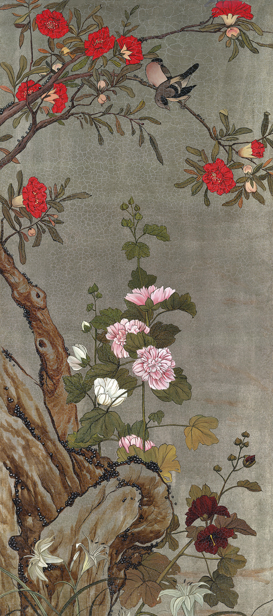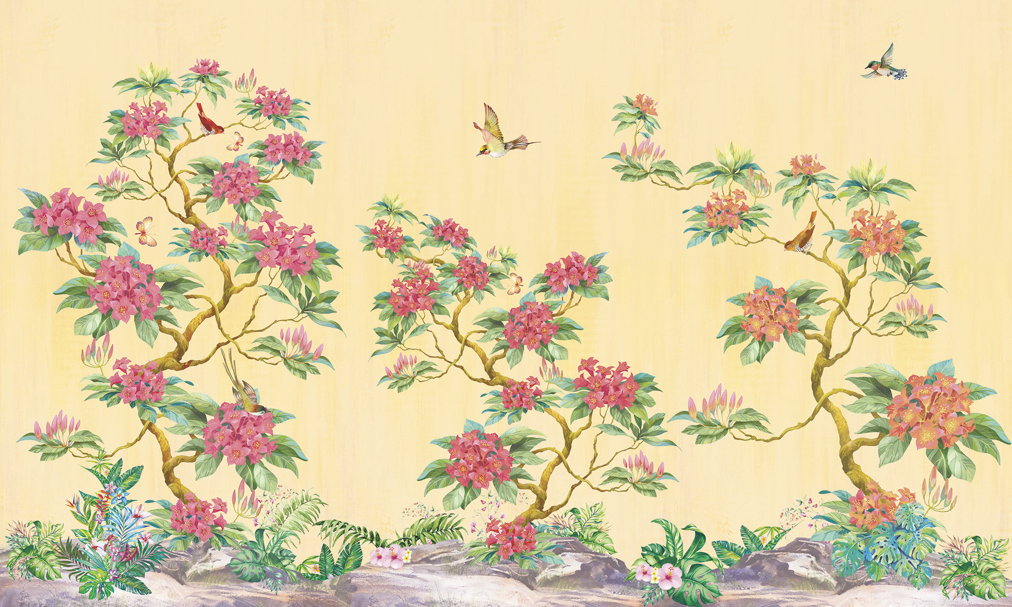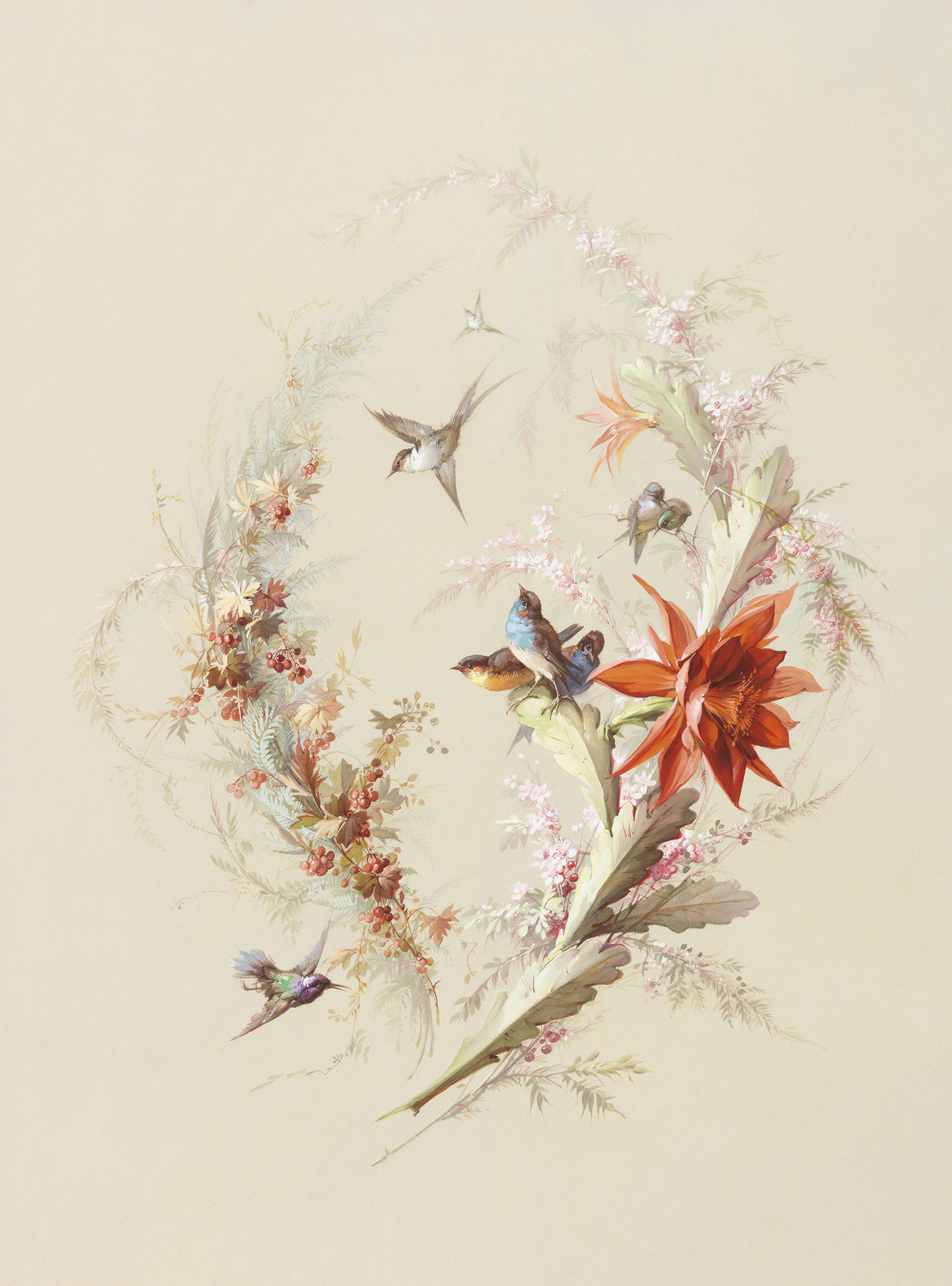 Птицы и красный цветок