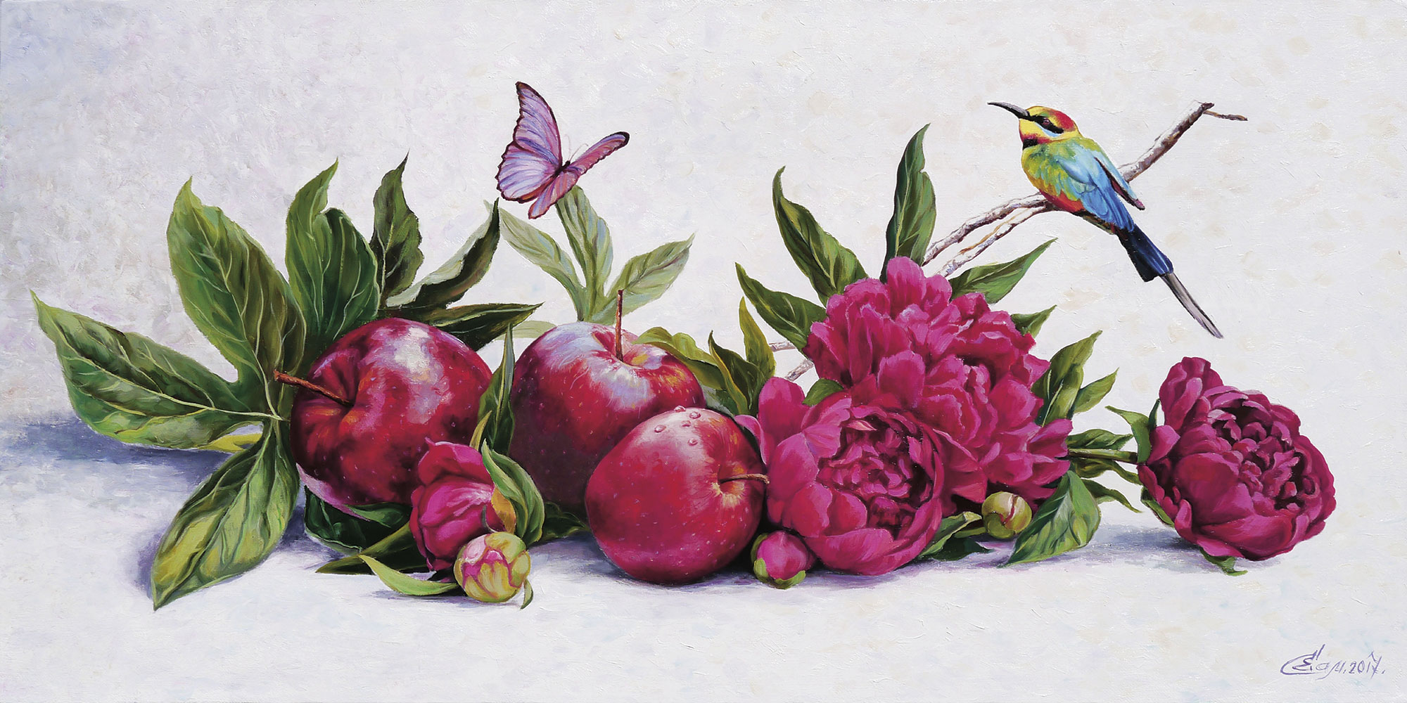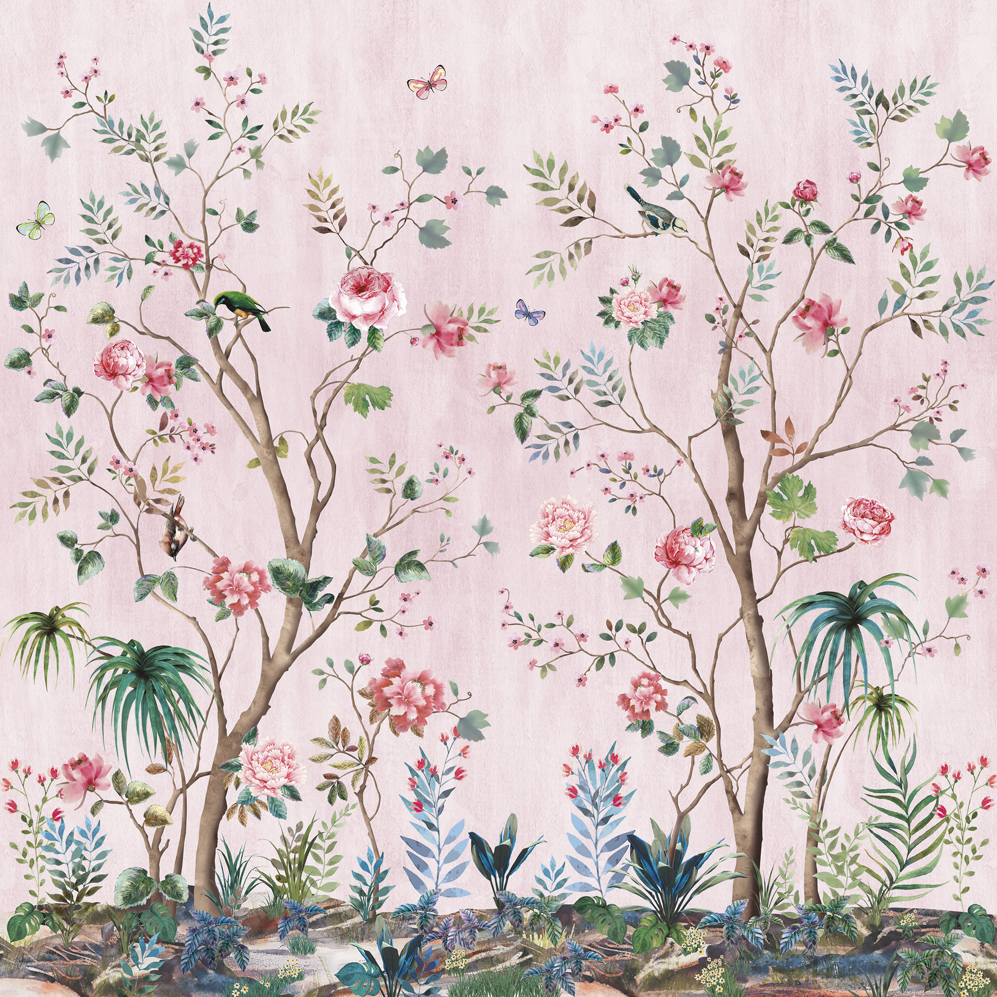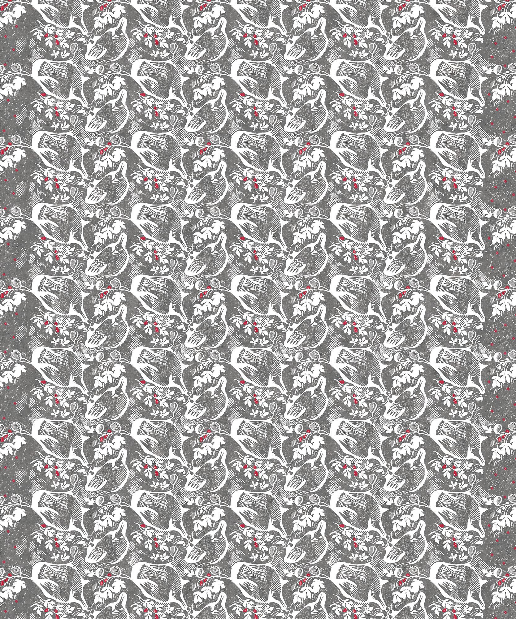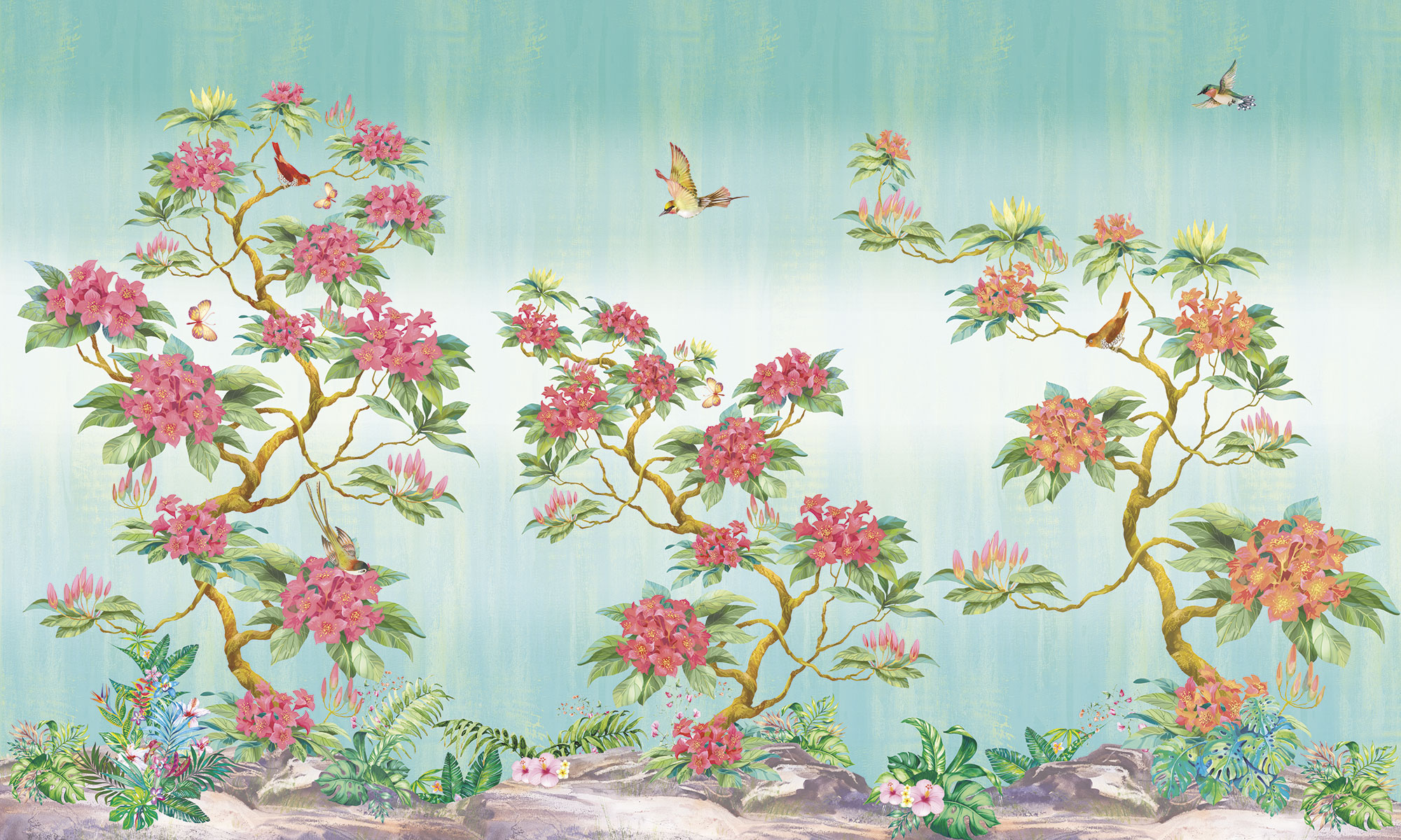 Птицы и красный цветок
