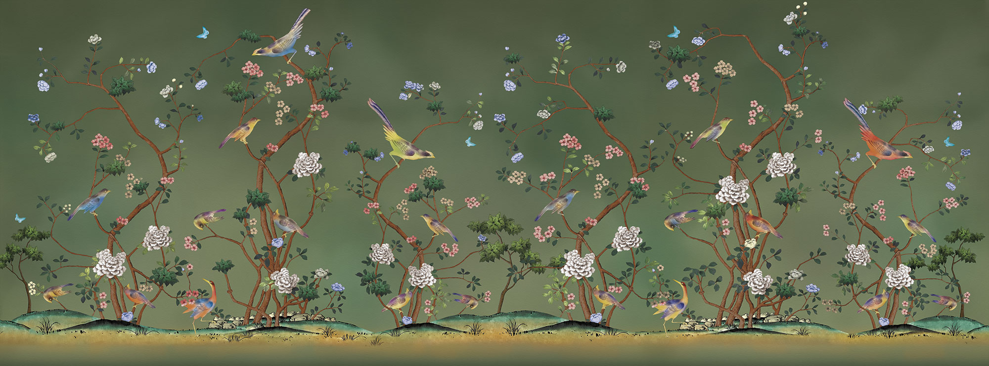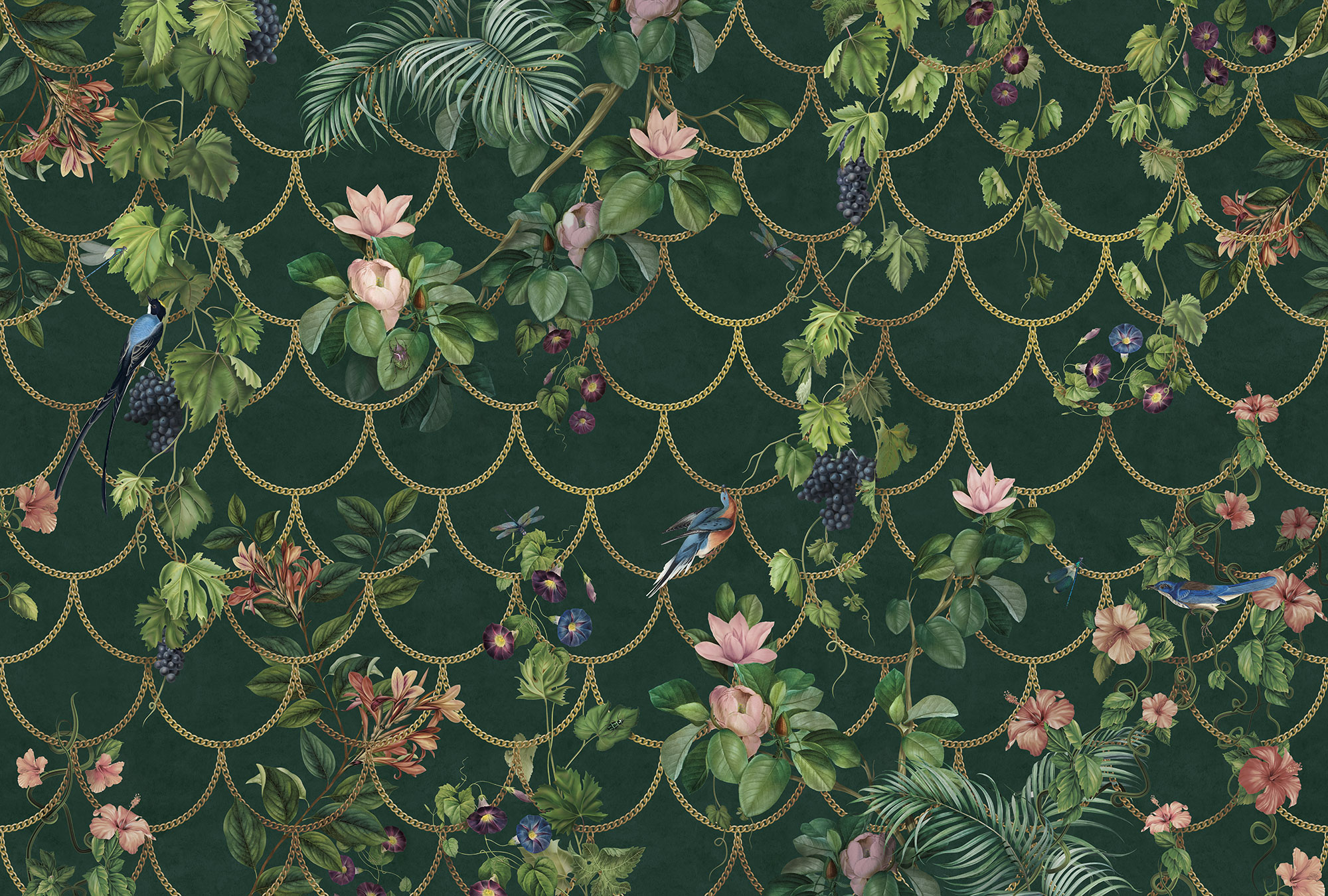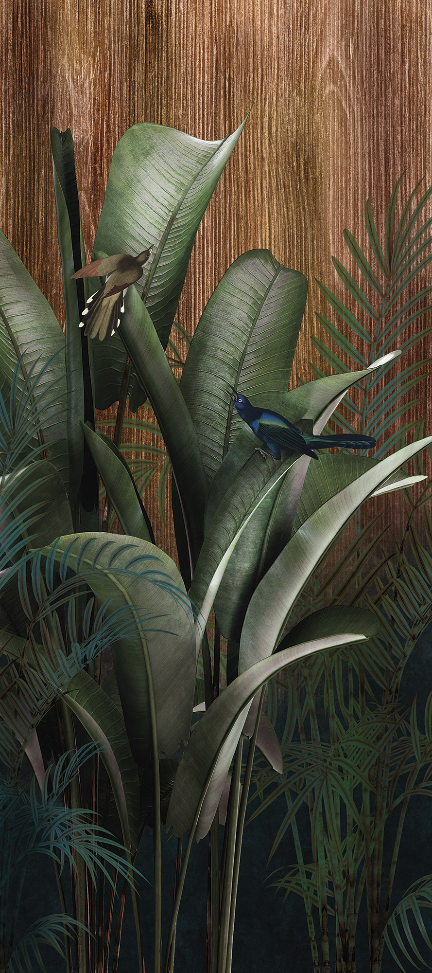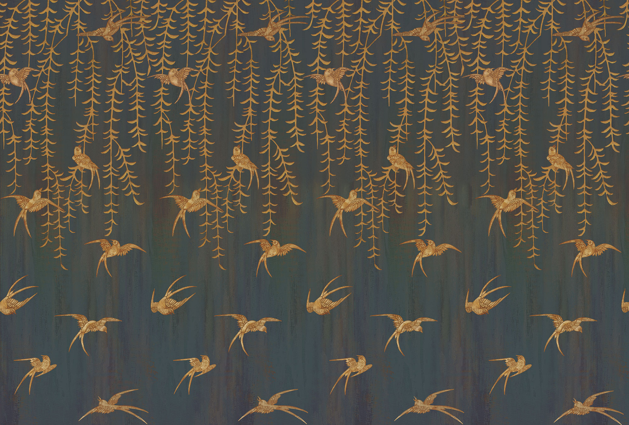 Japanese Birds midnight green