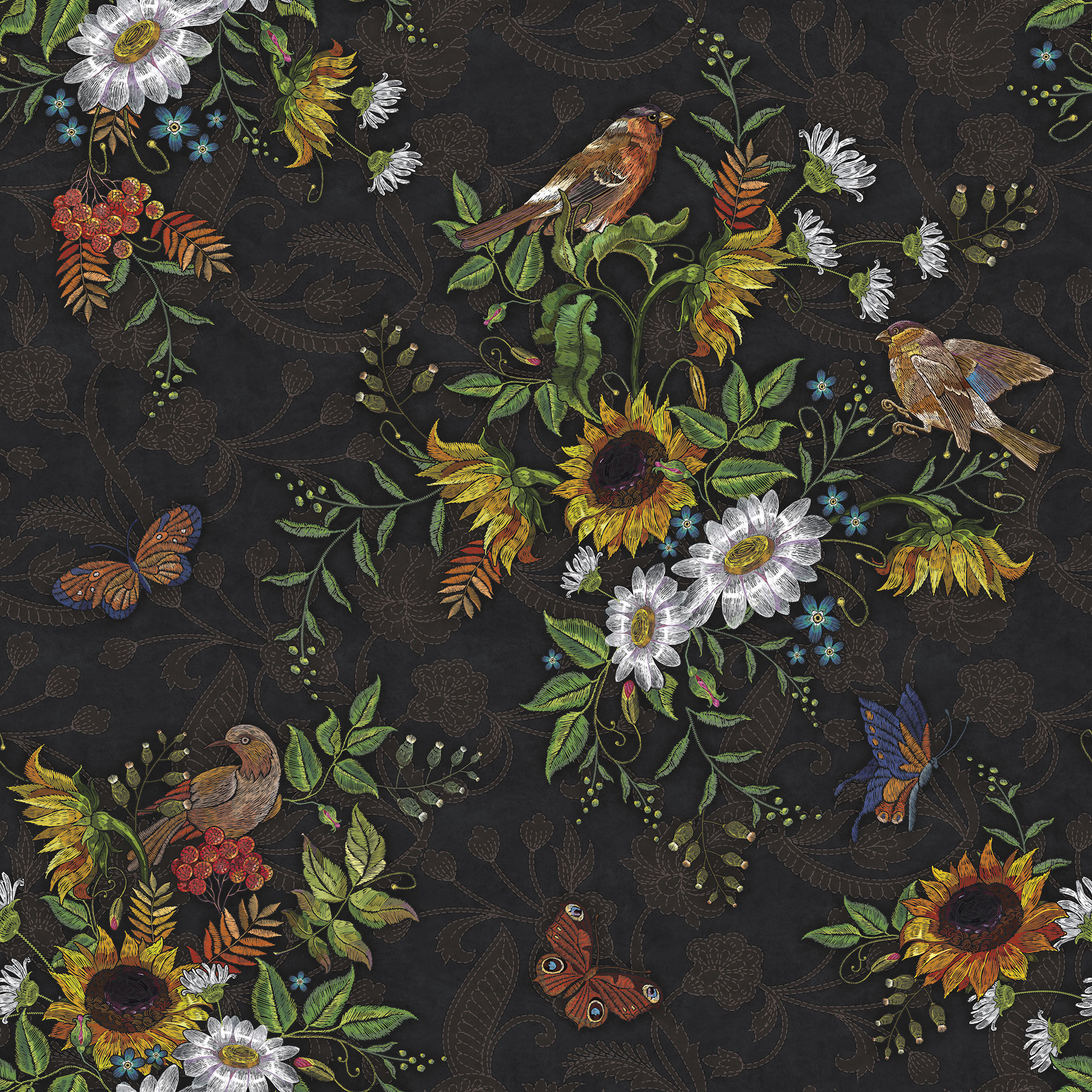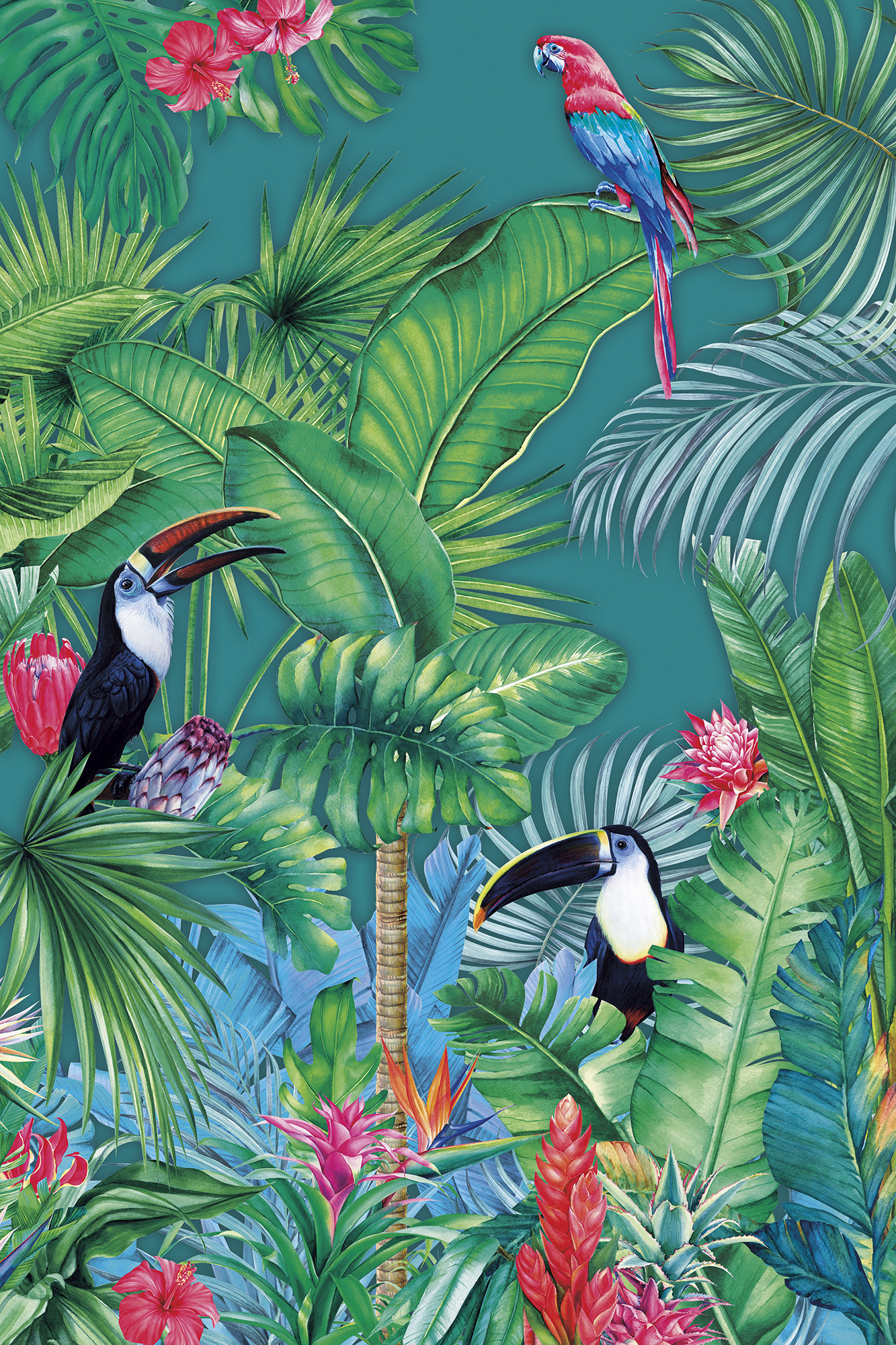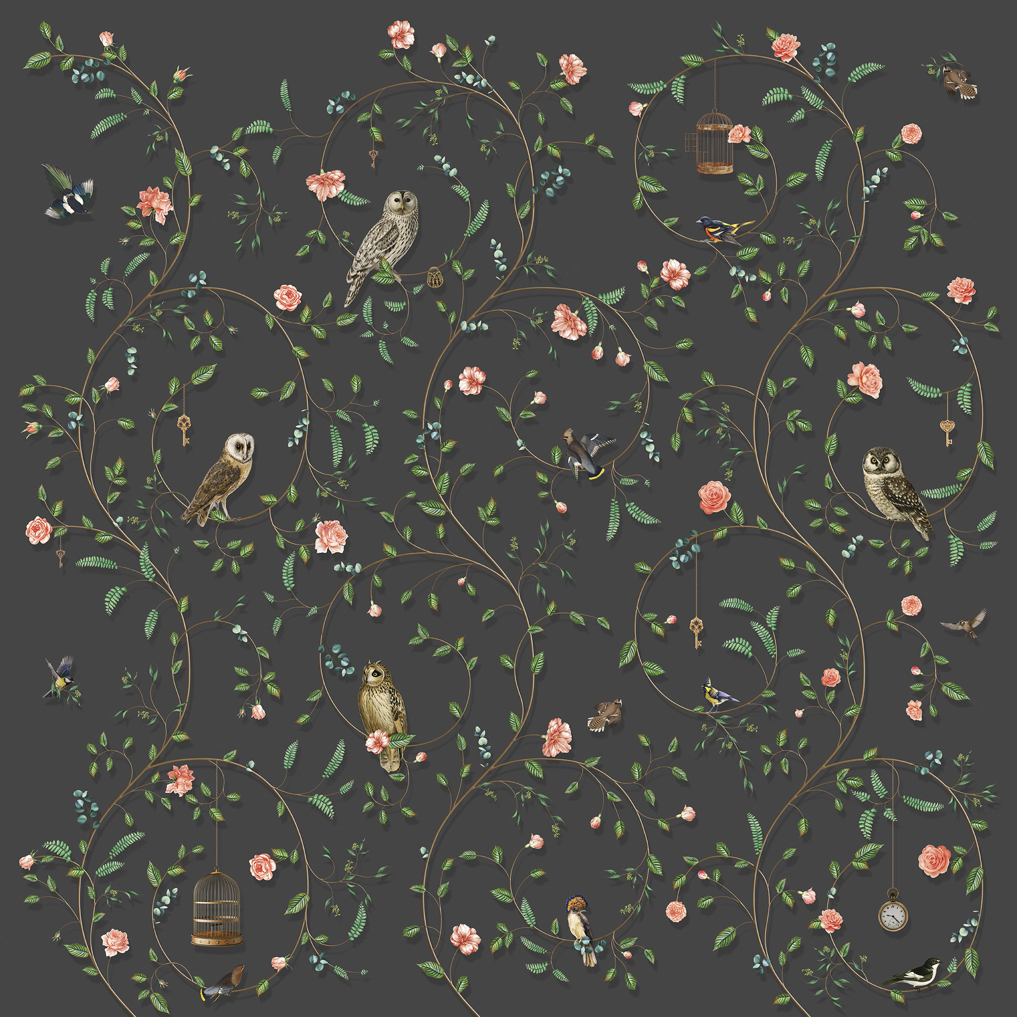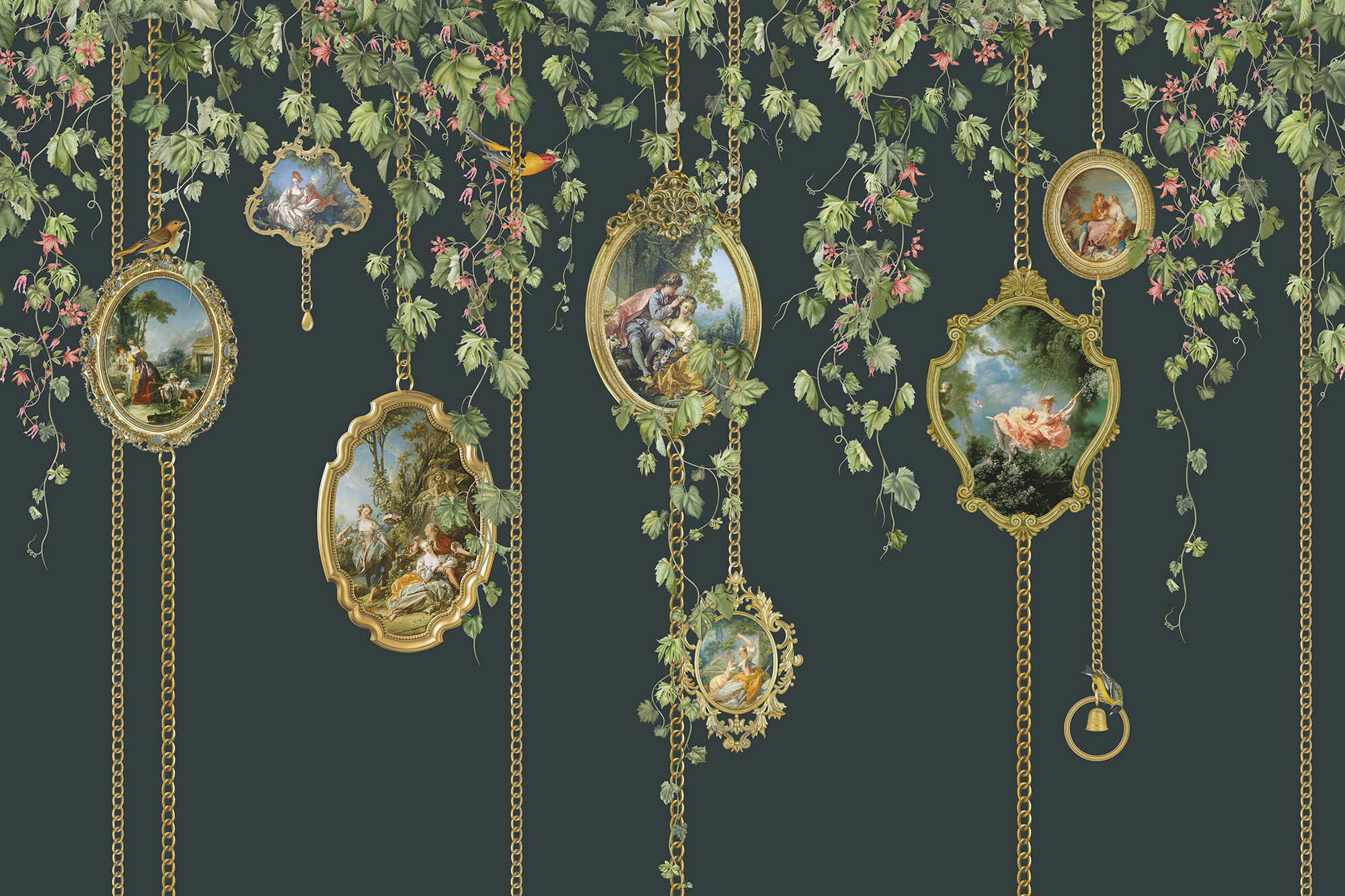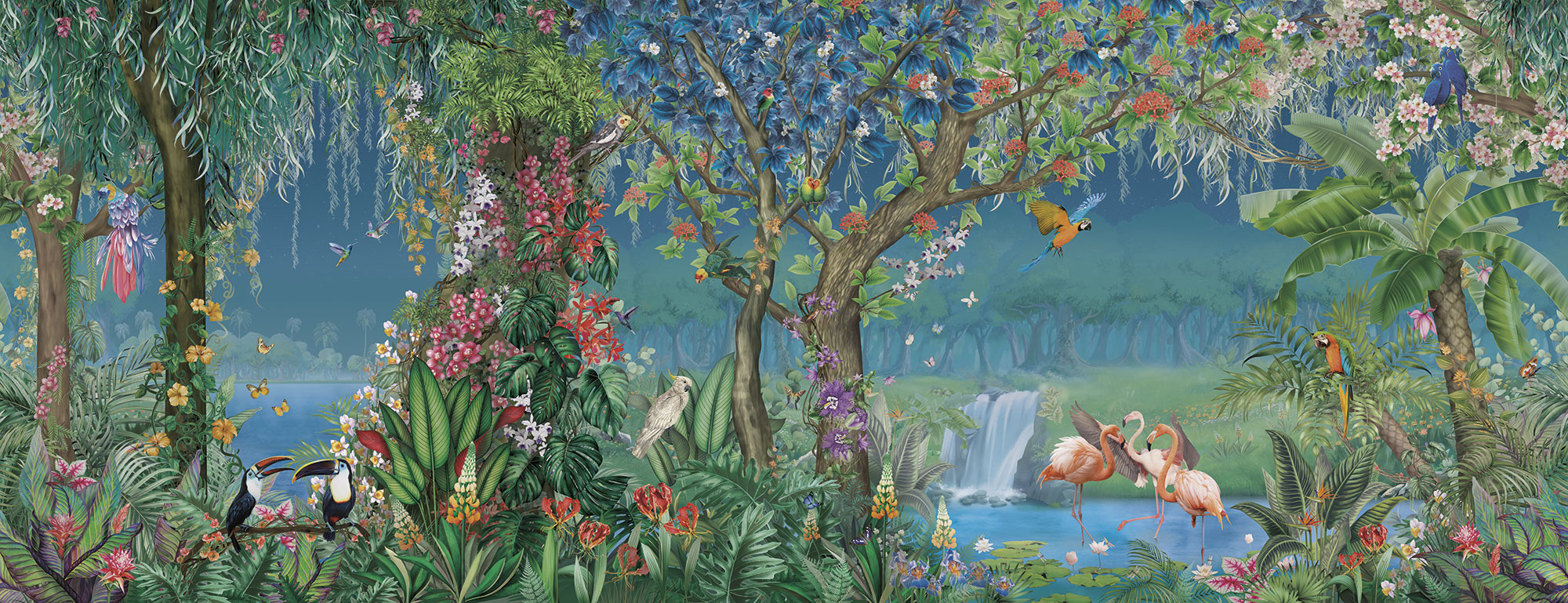 Japanese Birds midnight green