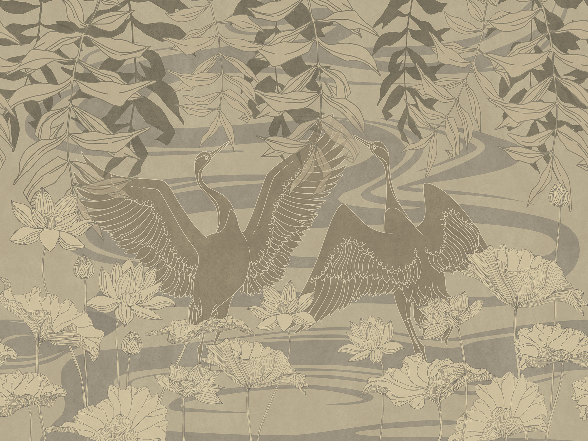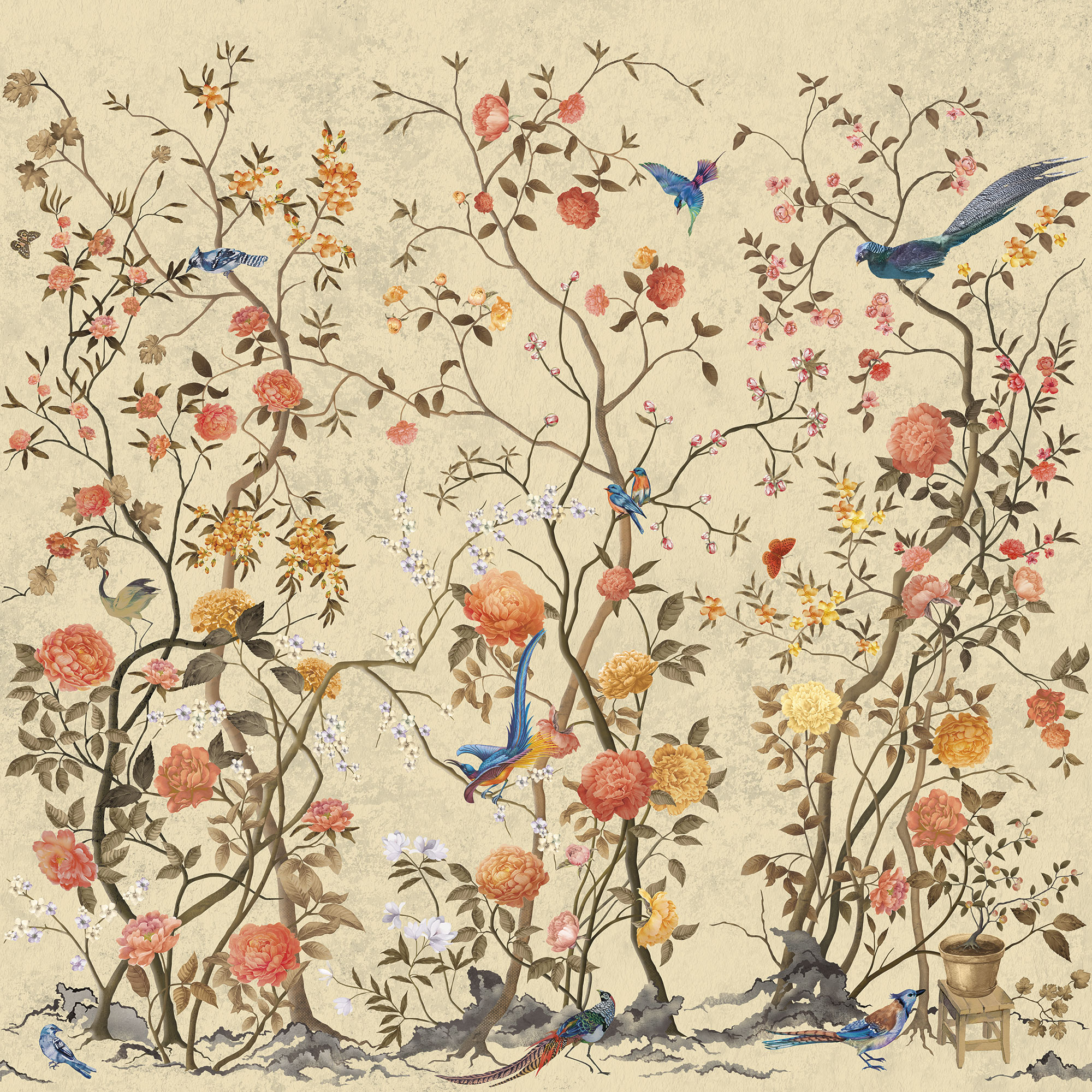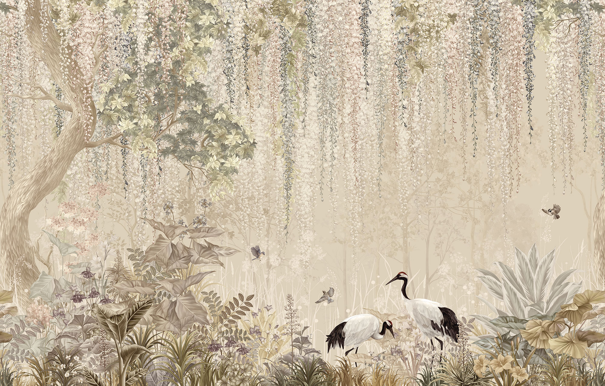 Japanese Birds beige