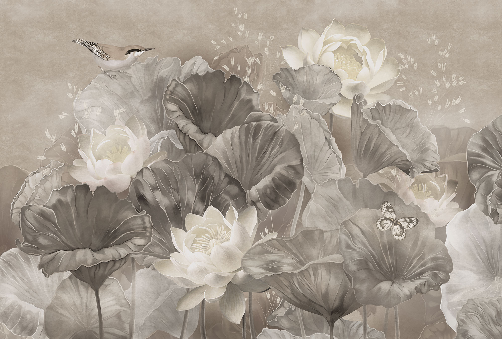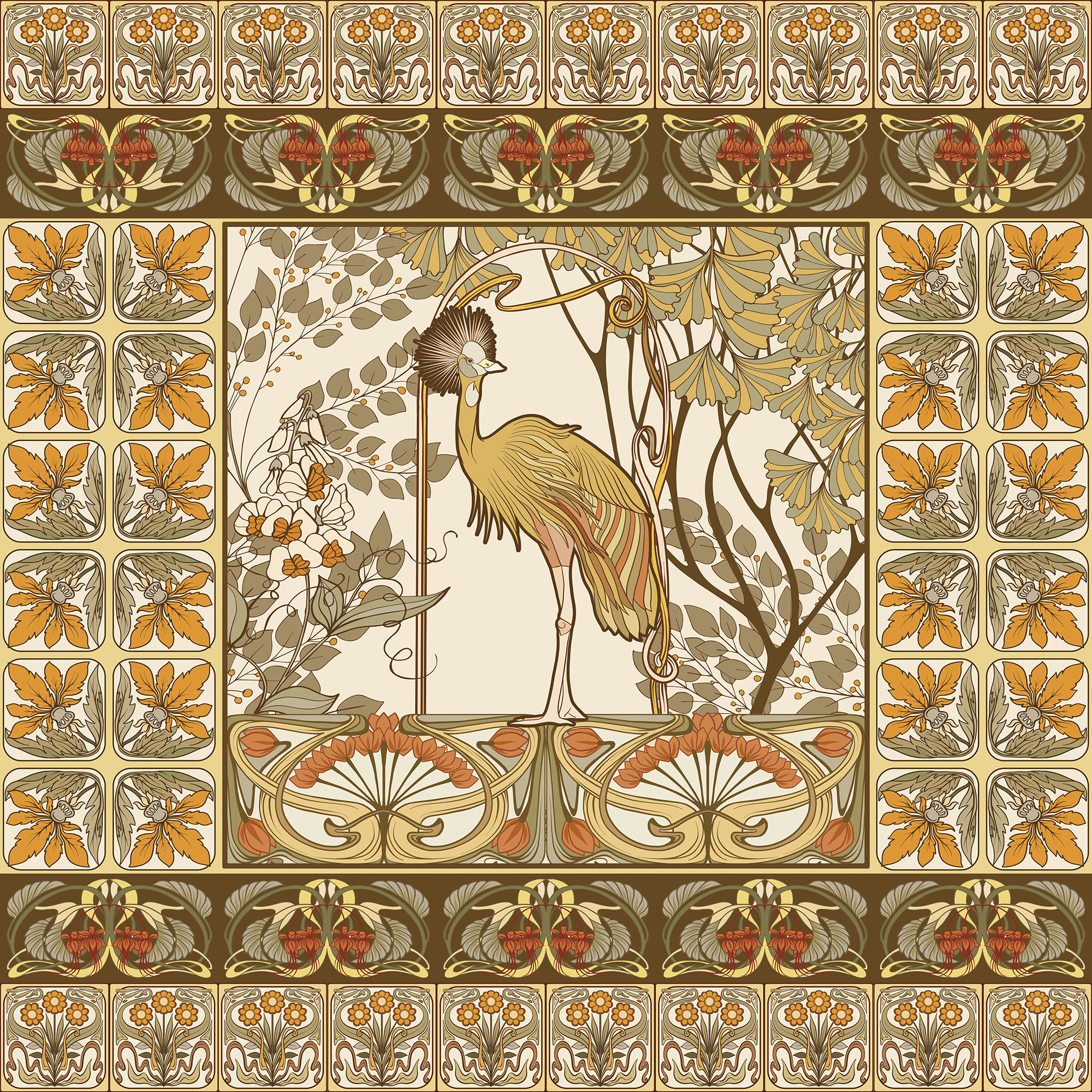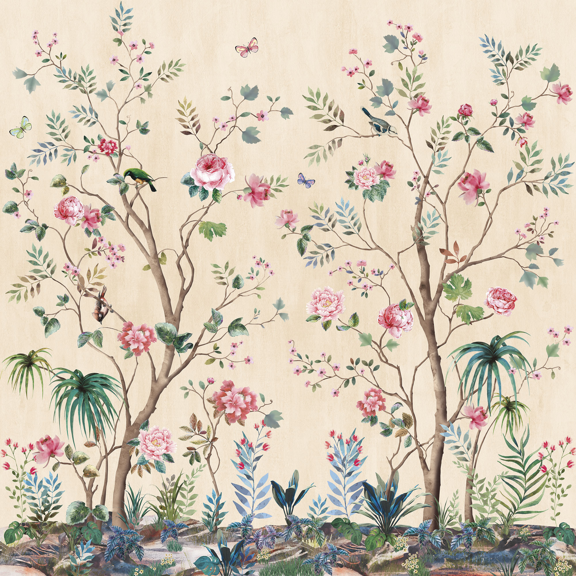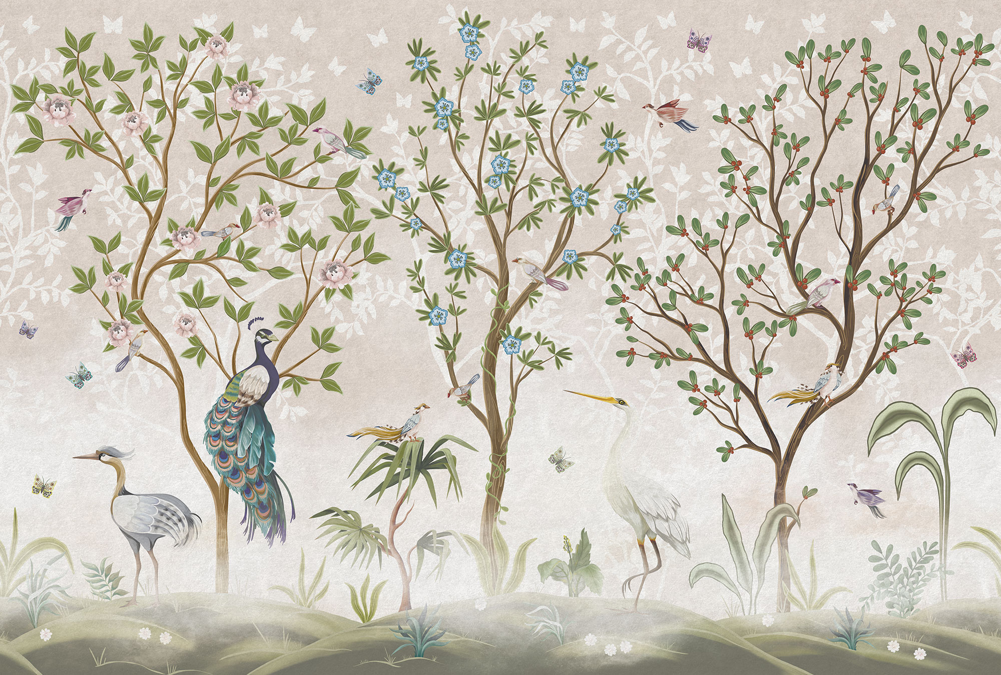 Japanese Birds beige