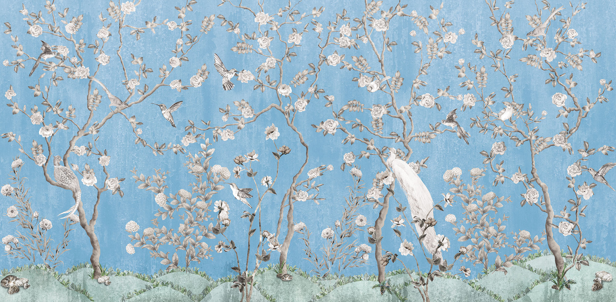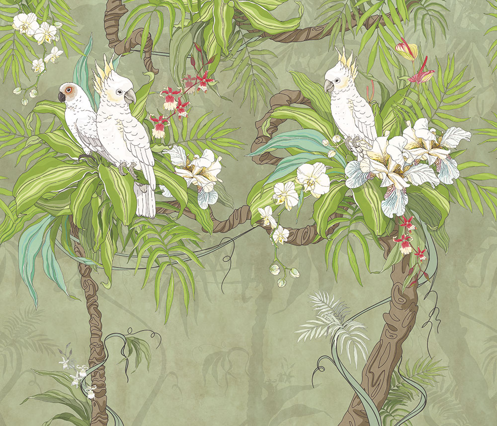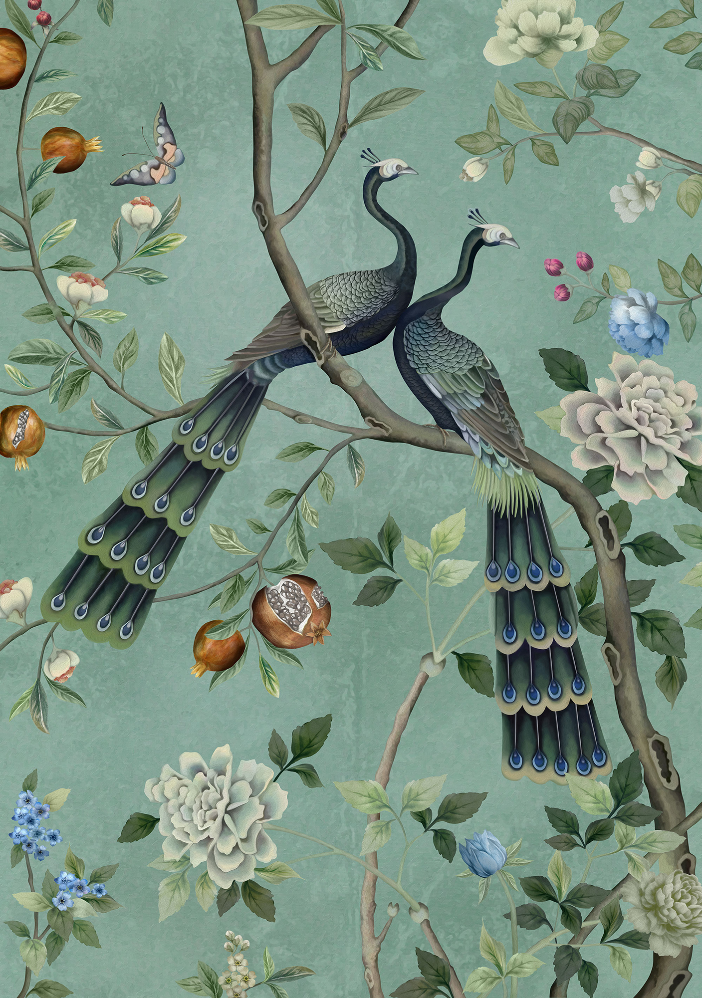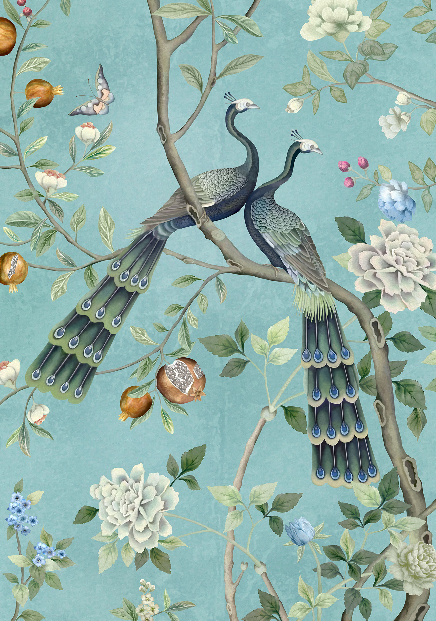 Paradise Peacocks light gray sea