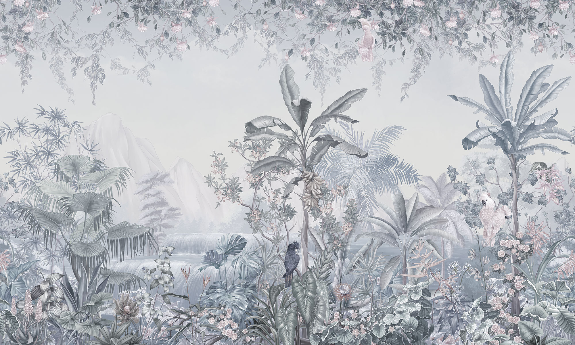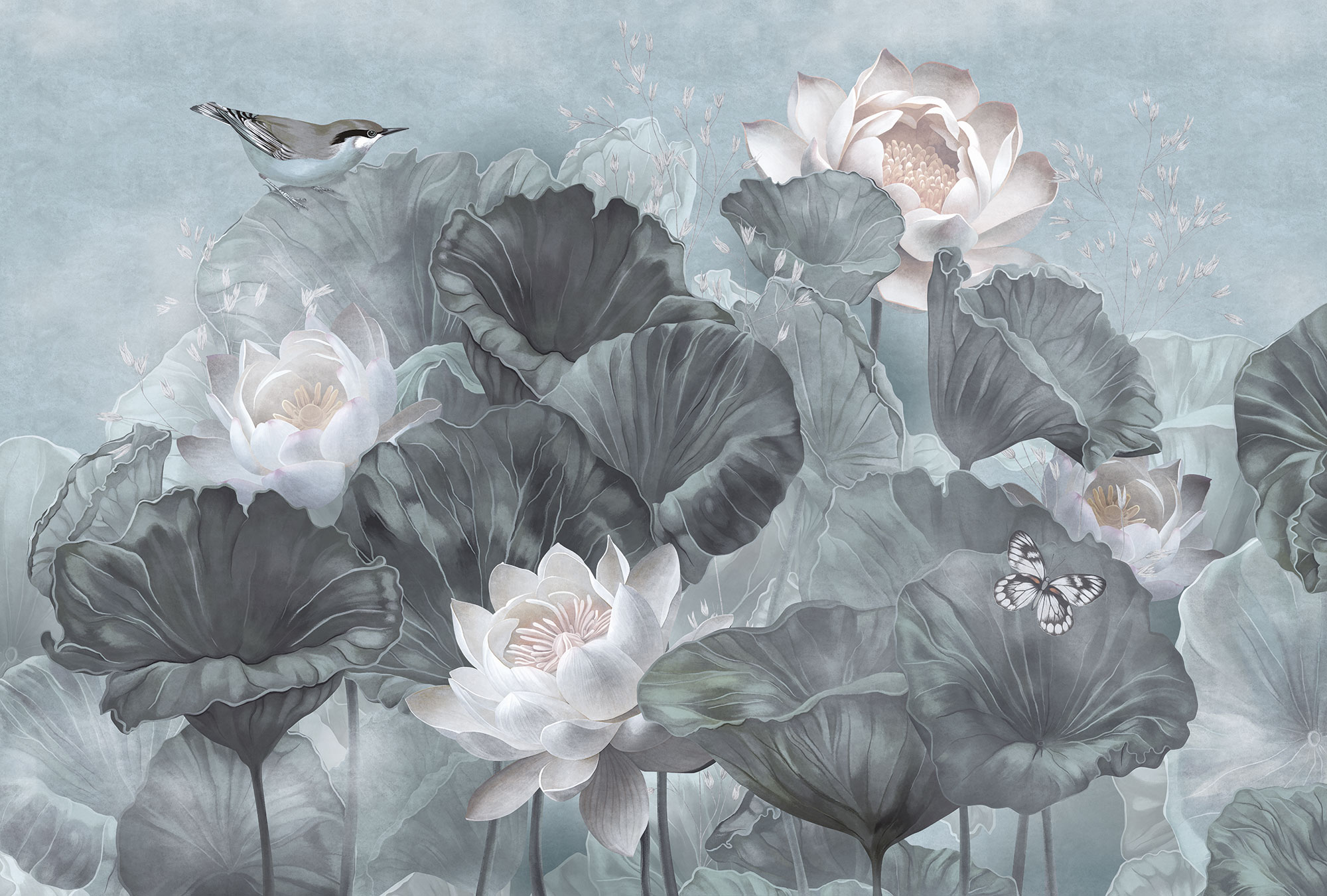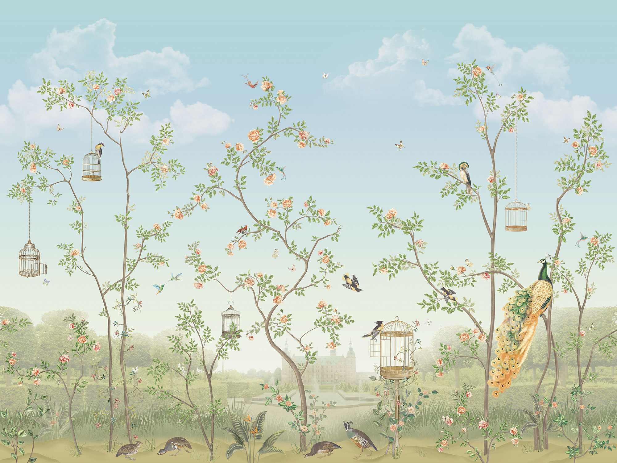 Paradise Peacocks light gray sea
