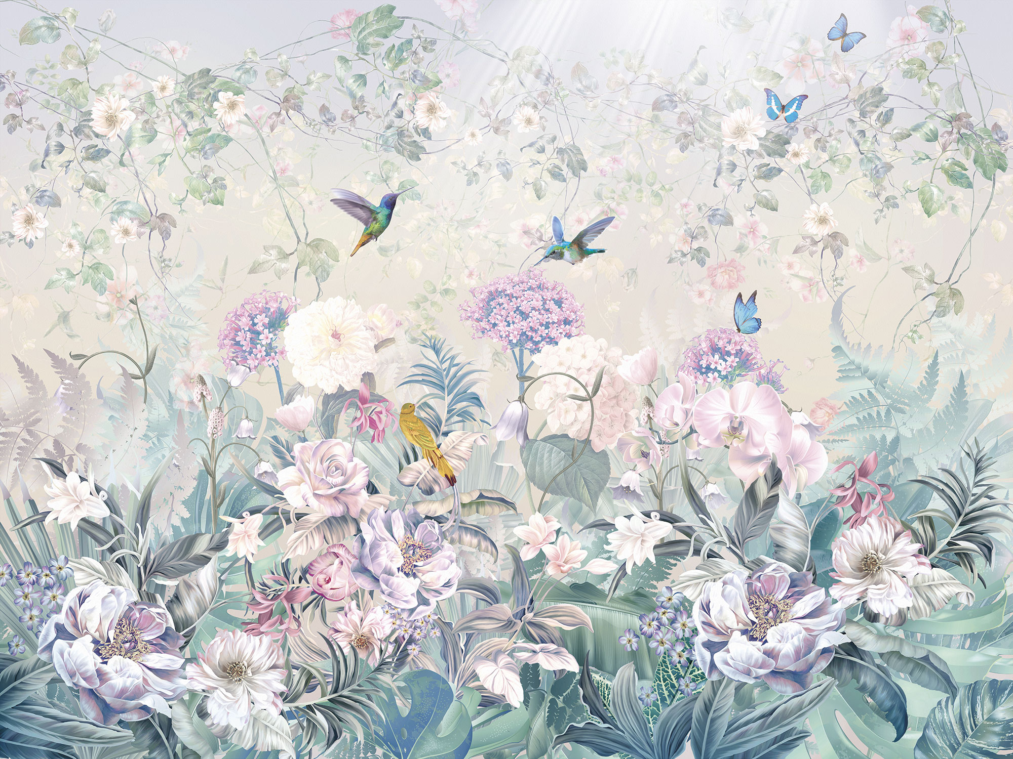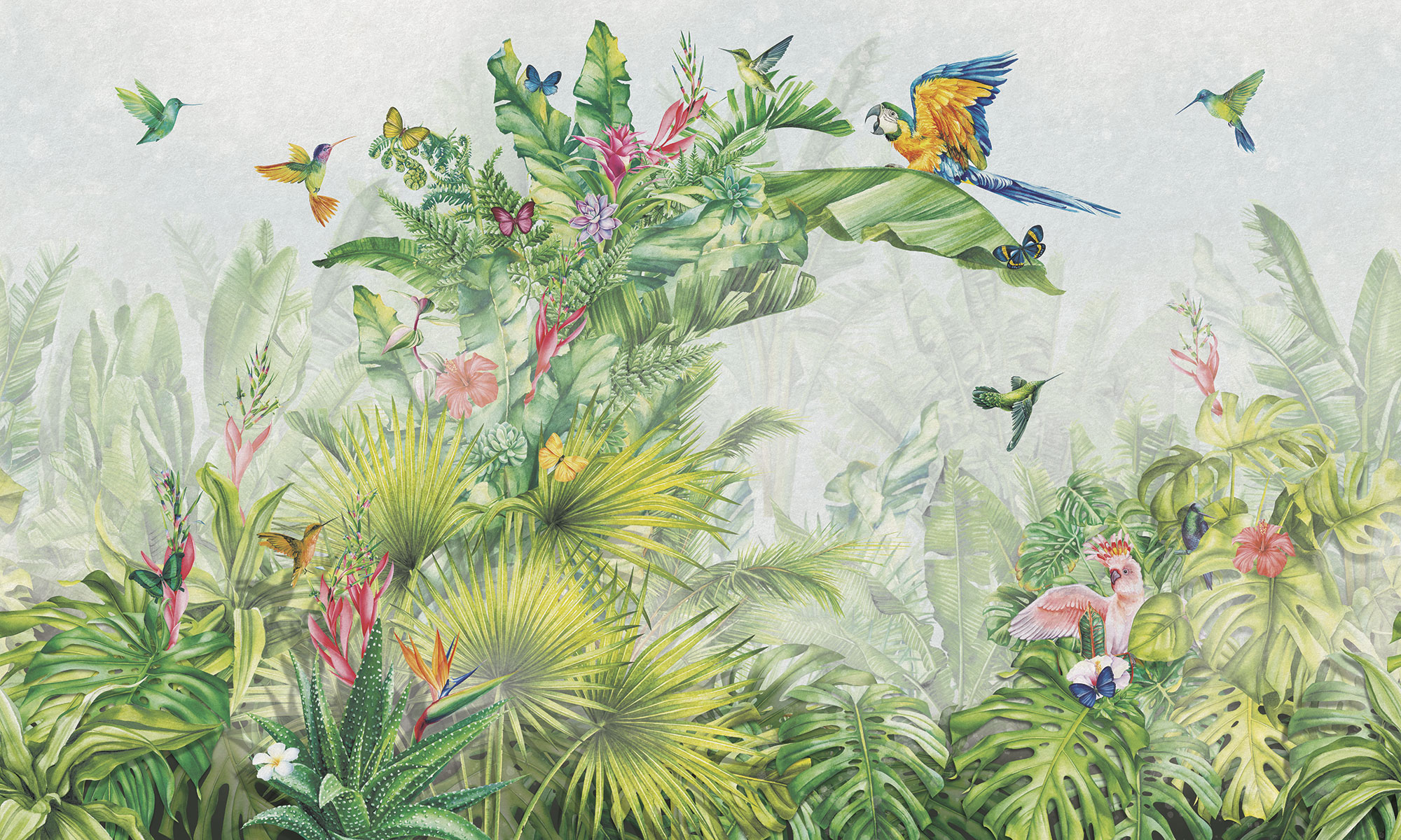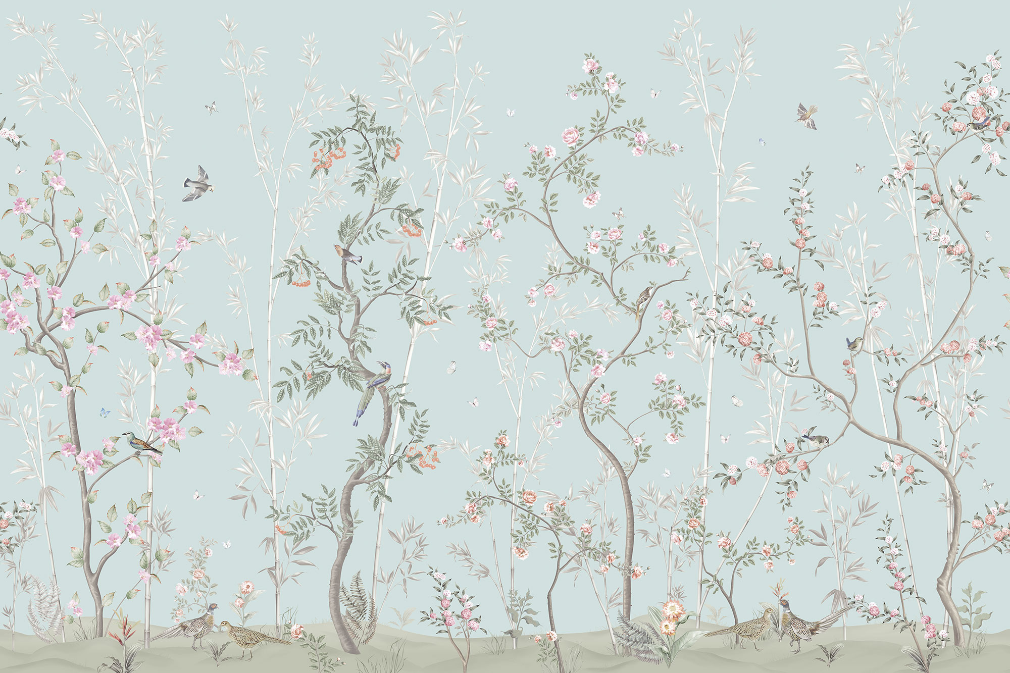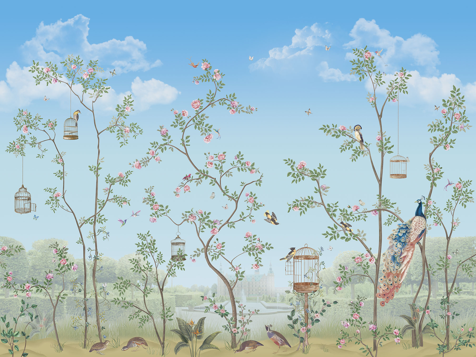 Paradise Peacocks light gray sea