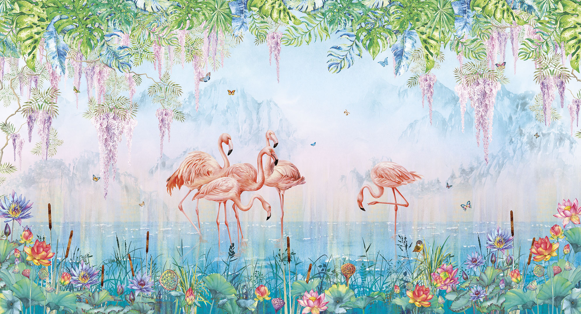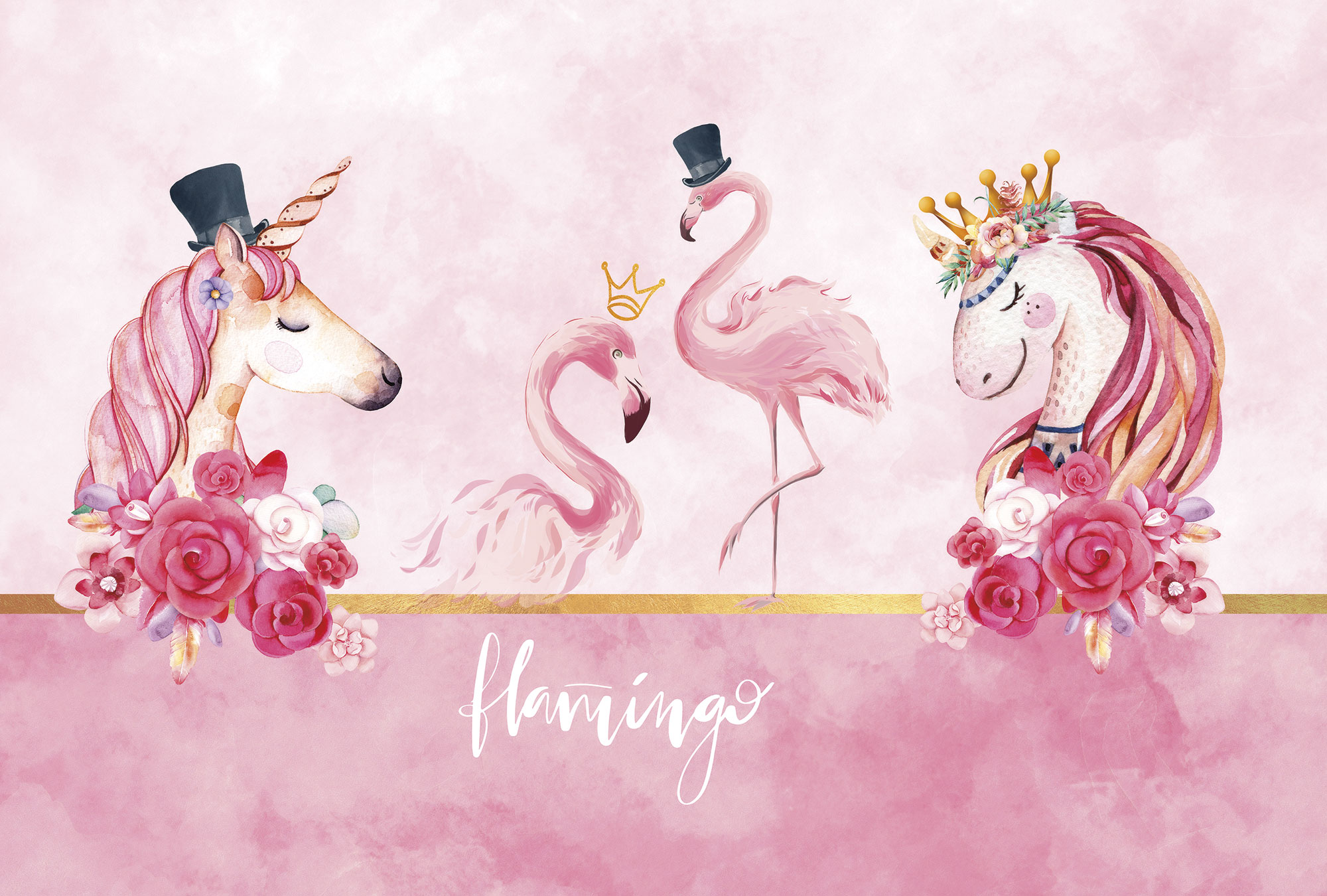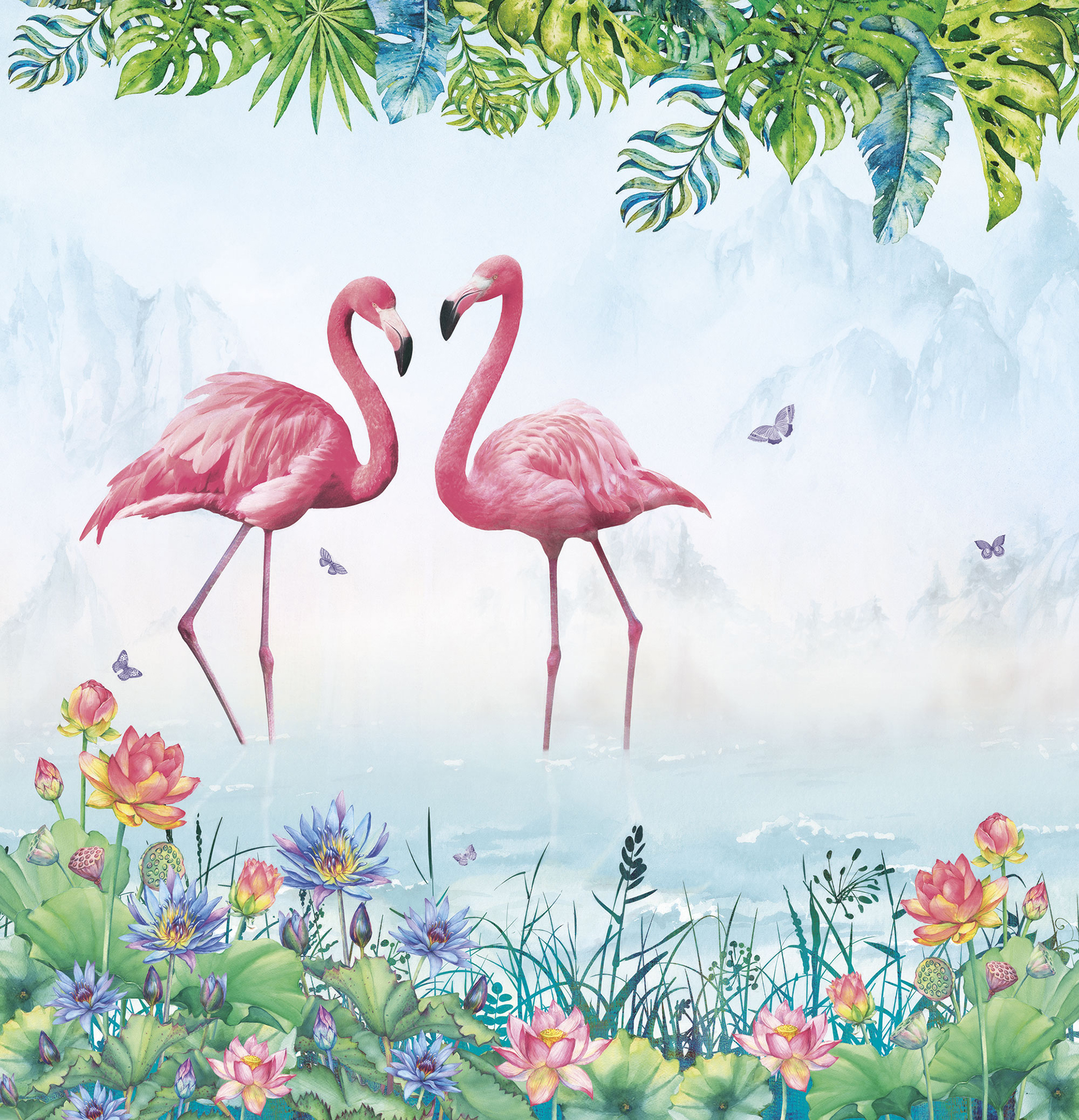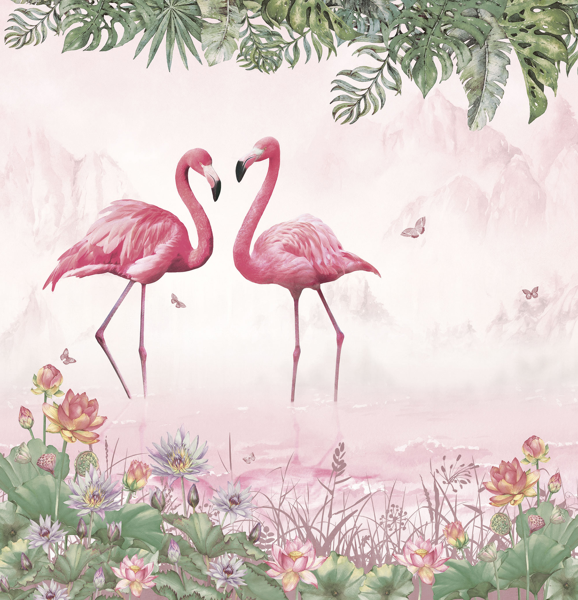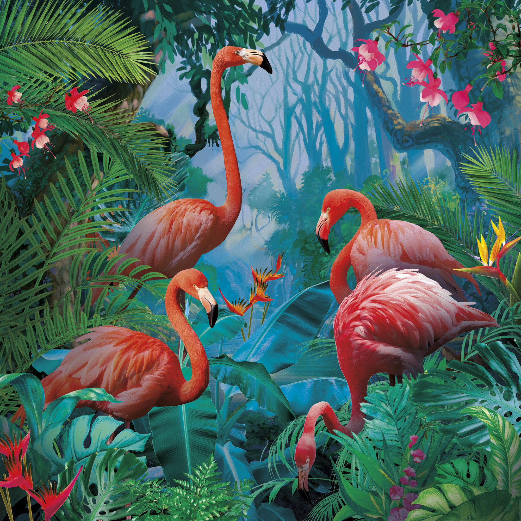 Graphic flamingos