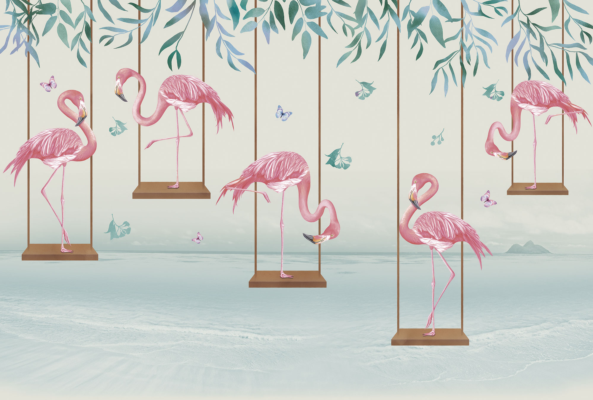 Фламинго на качелях