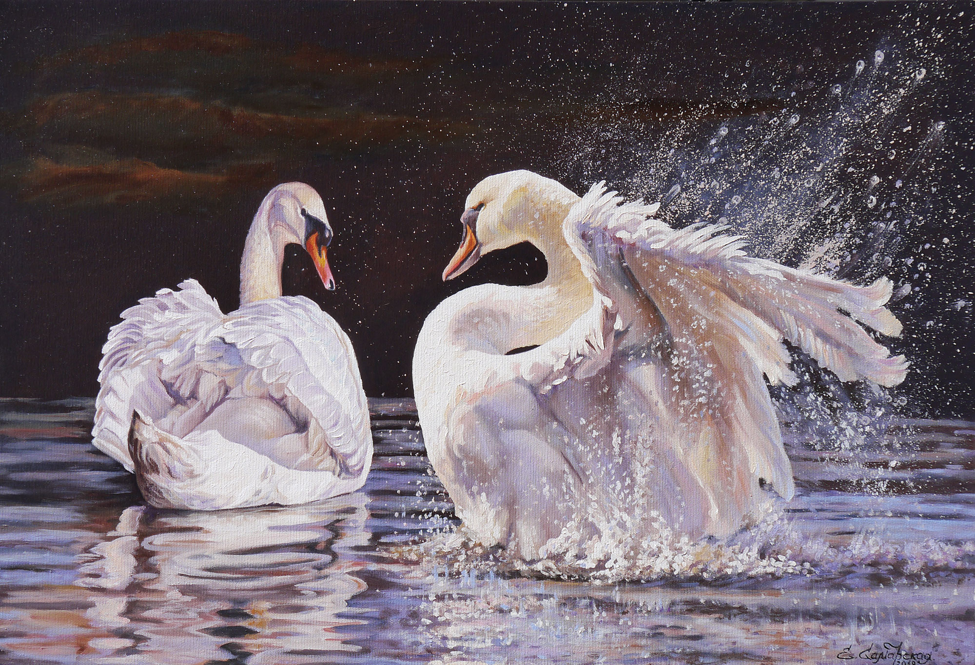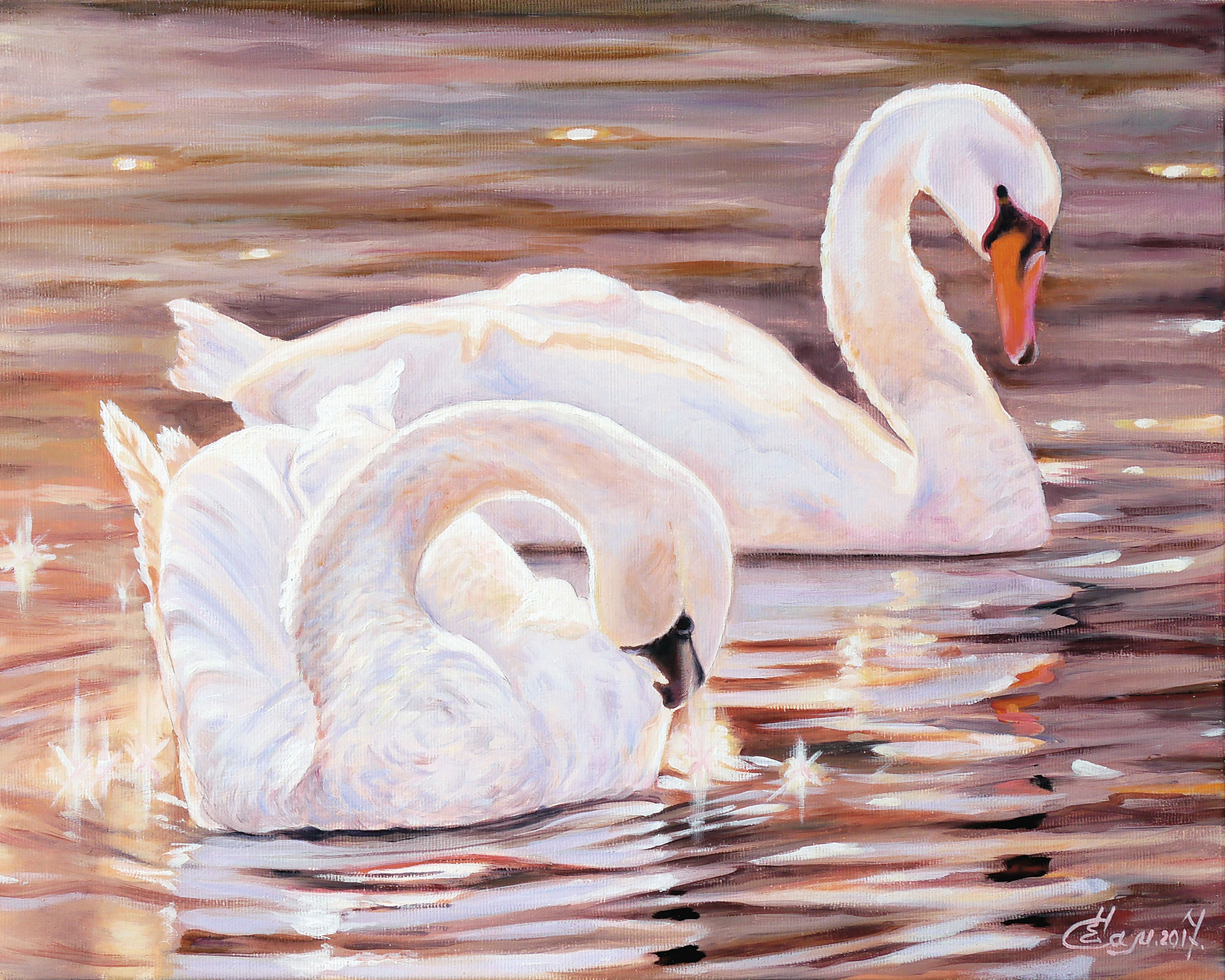 Две белых лебедя